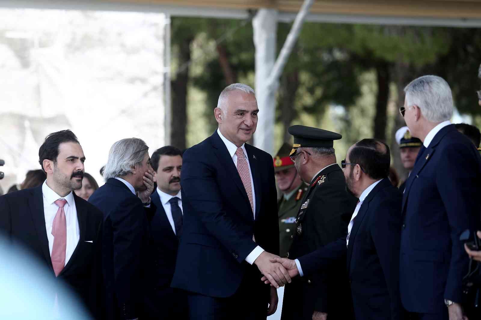 Çanakkale Kara Savaşları’nın 107. yıl dönümü anma etkinlikleri, Şehitler Abidesi’nde düzenlenen törenle başladı. Kültür ve Turizm Bakanı Mehmet Nuri Ersoy’un Atatürk rölyefine çelenk sunmasıyla başlayan tören, saygı duruşu, saygı atışı ve İstiklal Marşı’nın okunmasıyla devam etti. Törende konuşan Bakan Ersoy, “Çanakkale Zaferi olarak tarihin sayfalarına şanla kaydettiğimiz büyük mücadelenin ikinci safhası olan kara savaşlarının başlamasının üzerinden tam 107 yıl geçti. Bir yıl dönümünde daha daima rahmet ve minnetle yâd ettiğimiz aziz şehit ve gazilerimizin huzurunda bir araya gelmiş bulunuyoruz. Asla eksilmeyen bir gururla ve yaşananları anlatmak, doğru ve eksiksiz anlaşılmasını sağlamak sorumluluğuyla Çanakkale Savaşları’nın milli ve manevi mirasını dilimiz döndüğünce paylaşmak gayretindeyiz. Çanakkale, tek vücut olmuş Türk milletinin birlikte atan kalbi, beraber yürüdüğü yol, her şeyini feda etmeye hazır olarak kenetlendiği inanmışlıktır. İnsanın hayatına yön veren, neden yaşadığına dair farkındalığıdır. Bu farkındalığı edinenler seçimlerinde tereddüt etmez, pişmanlığa düşmez. Burada vatanını savunanlar ne için yaşadıklarını, hayatın nelerle anlam kazandığını ve neler kaybedildiğinde bu anlamın da yitip gittiğini çok iyi biliyorlardı. Ondan dolayı Osmanlı coğrafyasının dört bir yanından gelip omuz omuza verenlerin ve geri dönmeyi düşünmeyenlerin zaferidir. Çanakkale, medeniyetimizde insana verilen değerin, insan hayatına duyulan saygının en uç koşullarda bile esnemediğinin, savaşın yıkımına şahit olan gözlerin yine de insana bakışının değişmediğinin belgesidir.