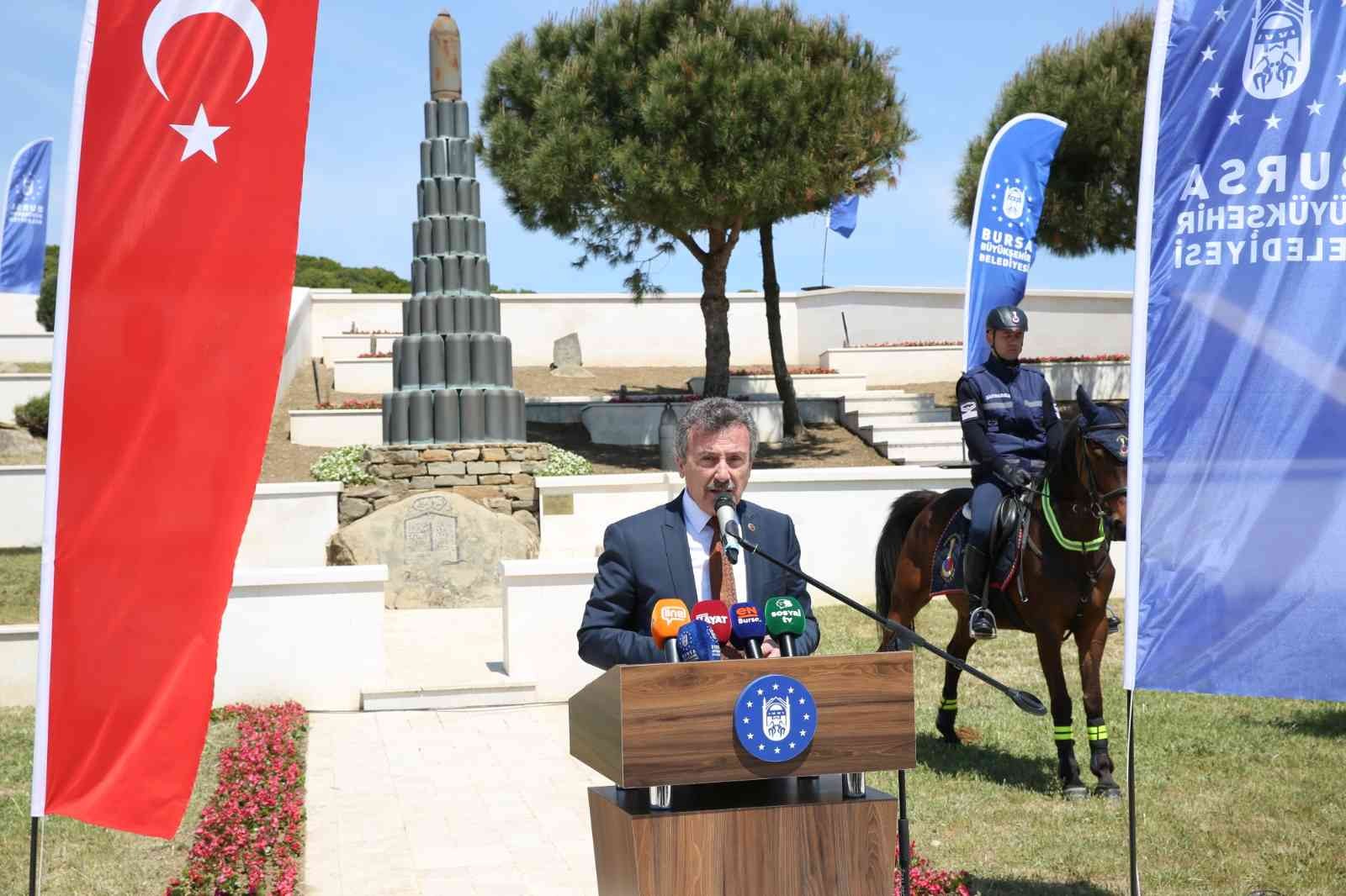 Çanakkale savaşlarında en fazla şehit veren Bursa, zaferin 107. yılında Büyükşehir Belediyesi tarafından restore edilen Kireçtepe Jandarma Şehitliği’nde kahraman ecdada vefa için tek yürek oldu.