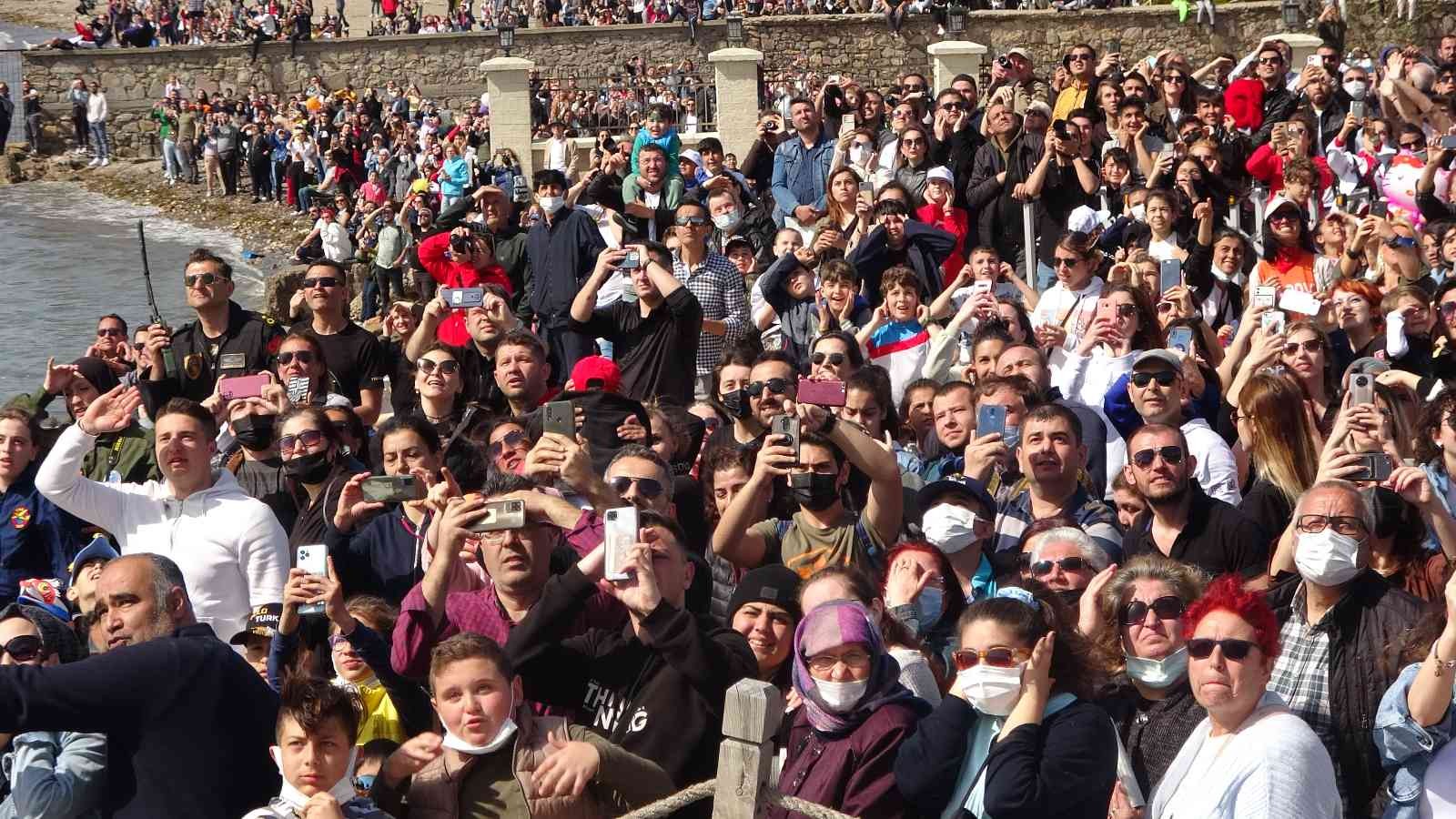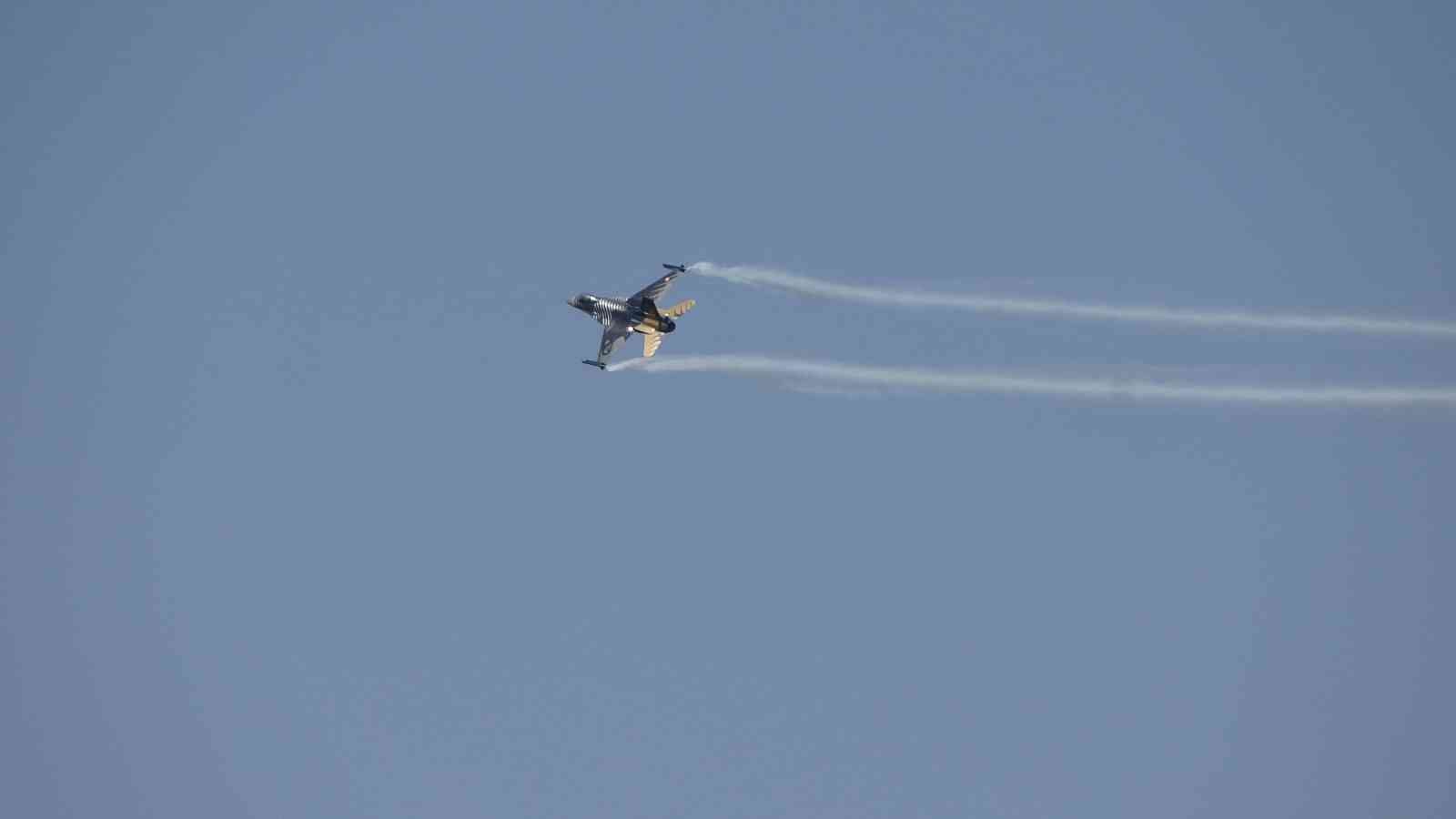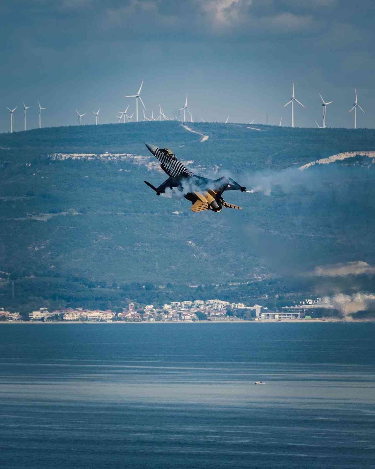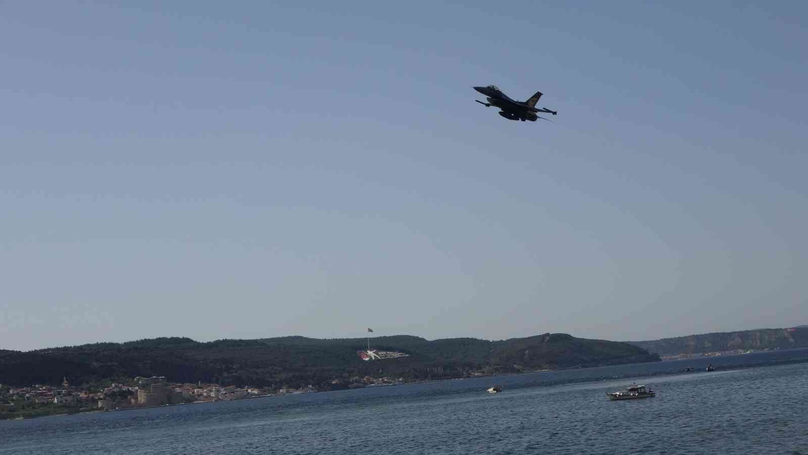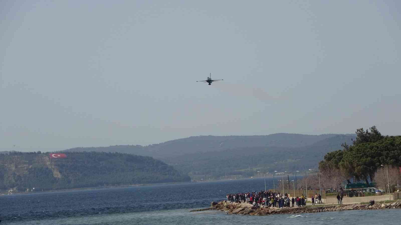 Üzerinde boya haricinde herhangi bir değişiklik yapılmamış olan F-16 savaş uçağının Çanakkale Boğazı üzerinde yaptığı gösteri nefes kesti.