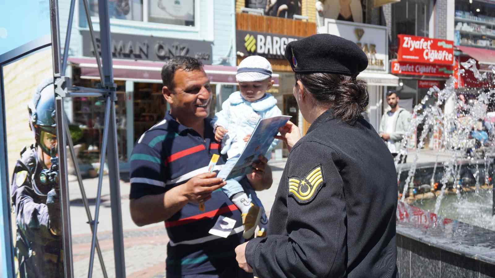 Ayrıca stantları ziyaret eden vatandaşların çocuklarına boyama kitabı, defter, kırmızı düdük ve çeşitli hediyeler dağıtılırken, annelere ise Kadın Destek Uygulaması (KADES) ile ilgili broşür verilerek tanıtıldı.