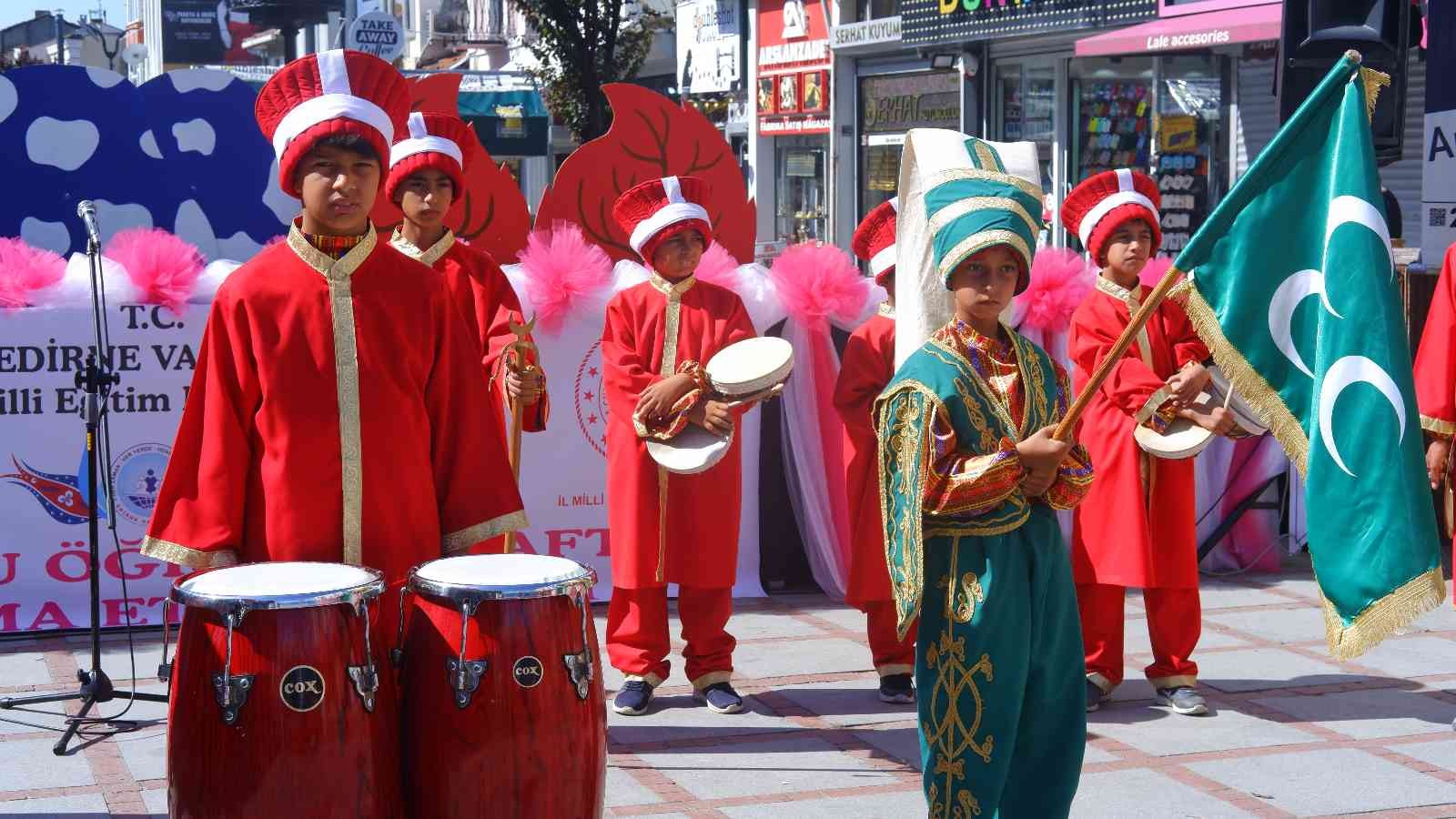 Edirne İl Milli Eğitim Müdürlüğü tarafından Saraçlar Caddesi’nde kutlanan Hayat Boyu Öğrenme Haftası etkinliklerinde öğrencilerden oluşan mehter takımı sahne aldı.