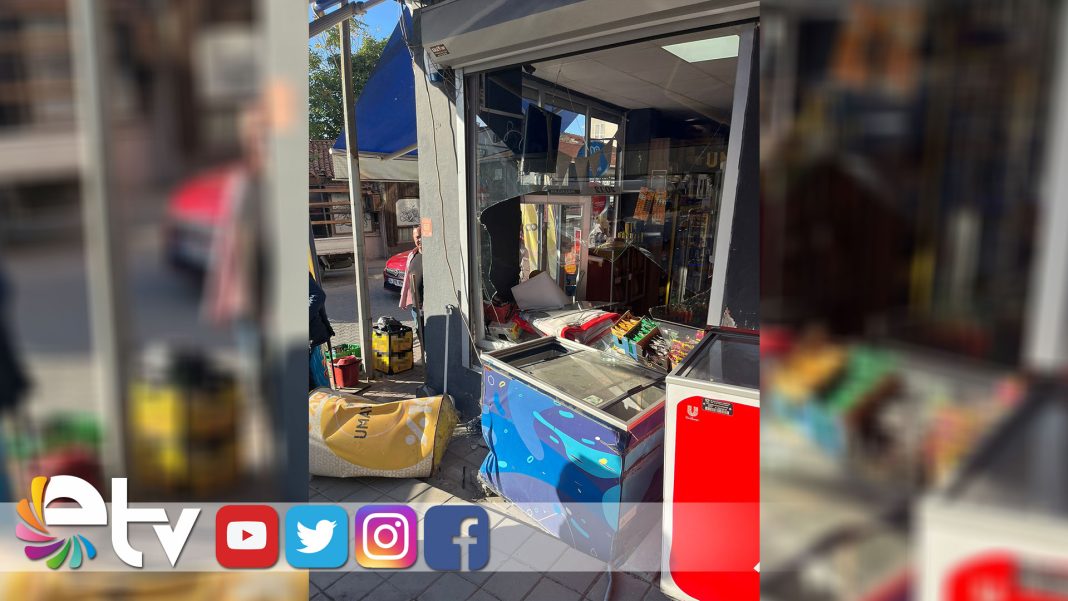 Edirne’nin Keşan ilçesinde kontrolden çıkan otomobil, önce yayaya ardından da marketin duvarına çarptı.