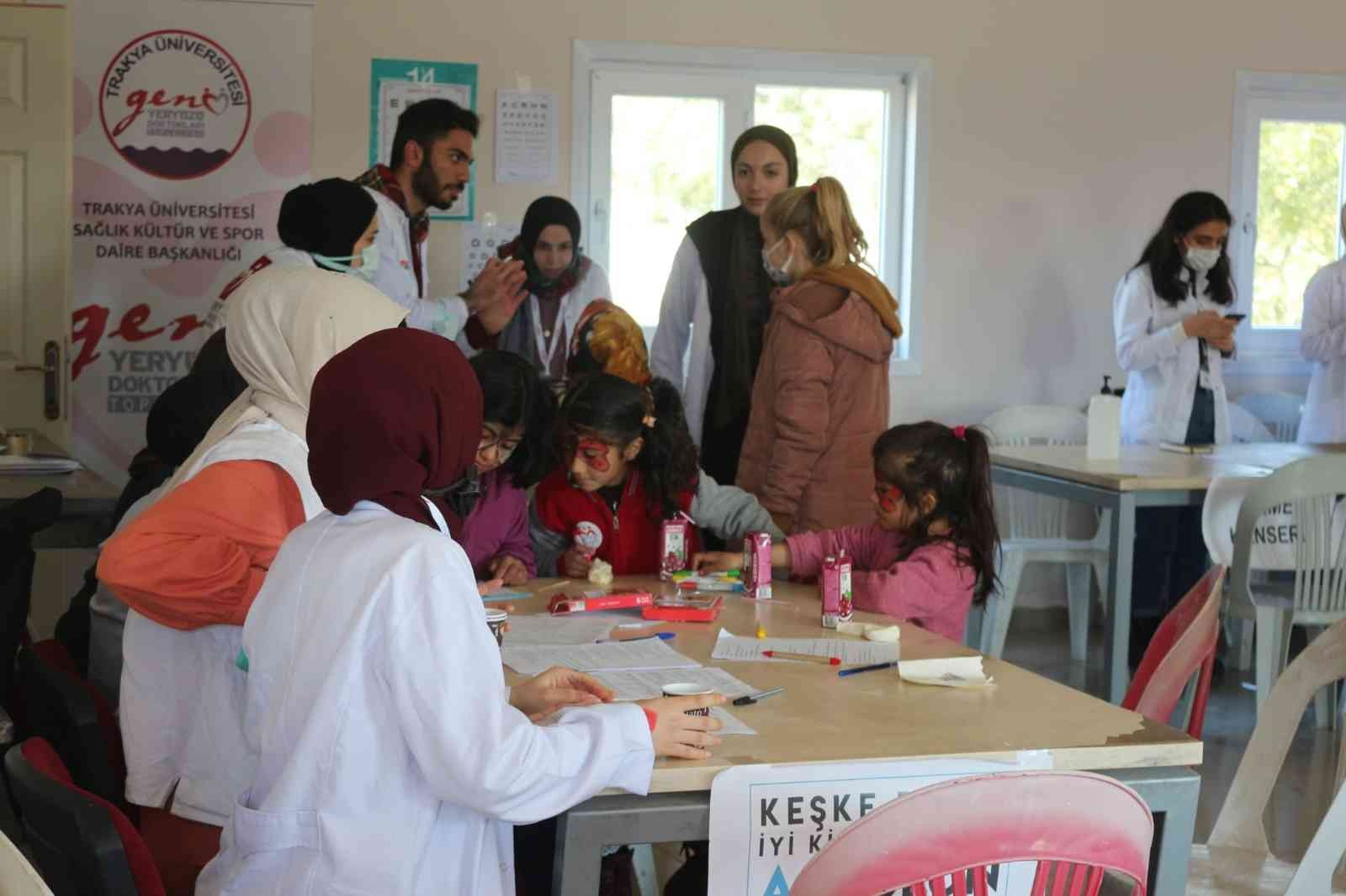 Edirne’nin Tayakadın köyünü ziyaret eden ve çeşitli sağlık kontrolleri yapan öğrenciler, bunun yanında temel ağız bakımı, diş sağlığının önemi, hijyen eğitimi gibi konulara da değindi.