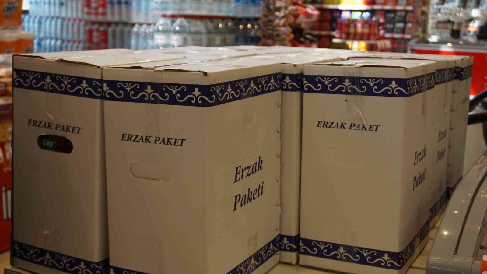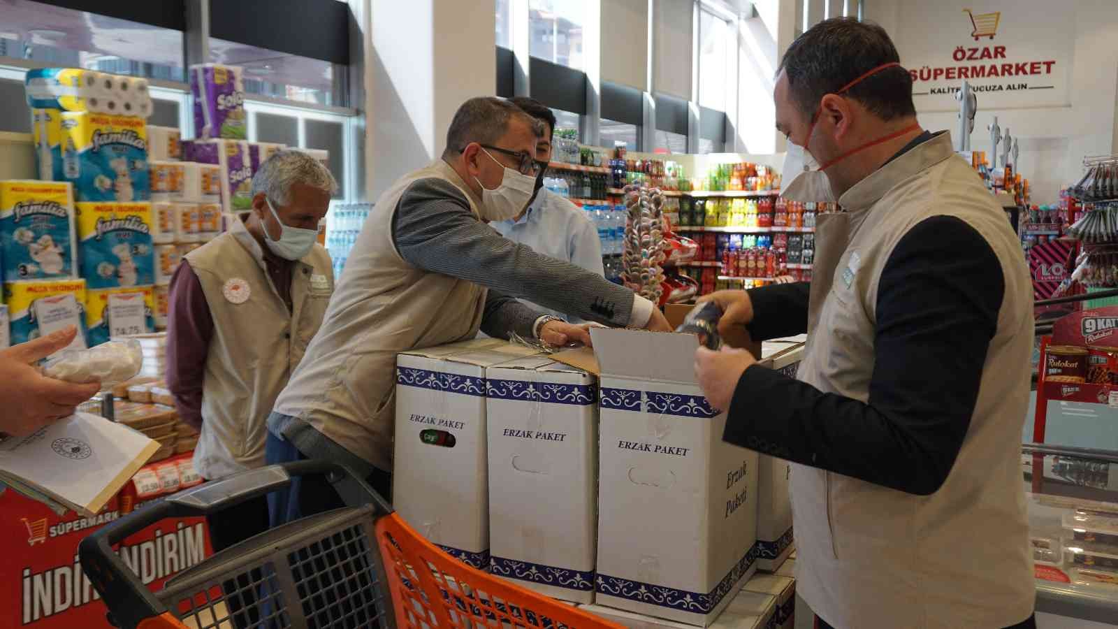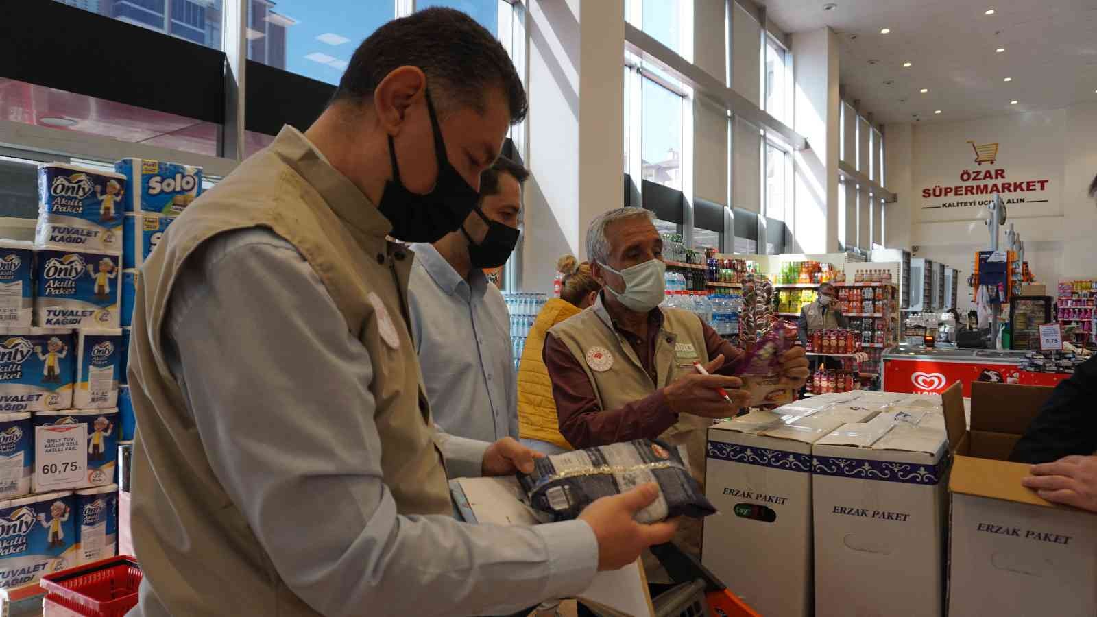 Ramazan ayı dolayısıyla hazırlanan gıda kolilerini açan ekipler, kolinin içinde bulunan ürünleri de tek tek çıkararak tarihlerini kontrol etti.