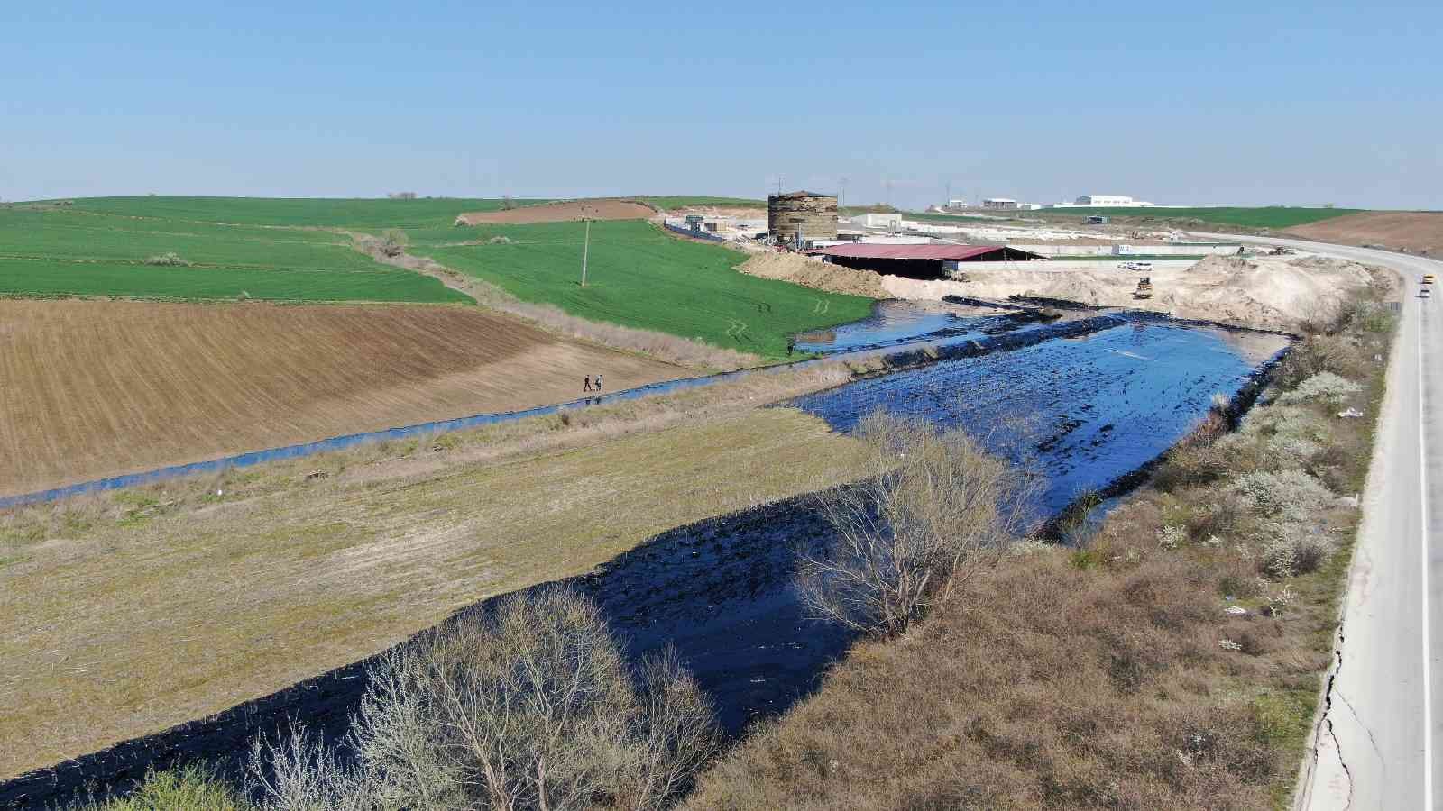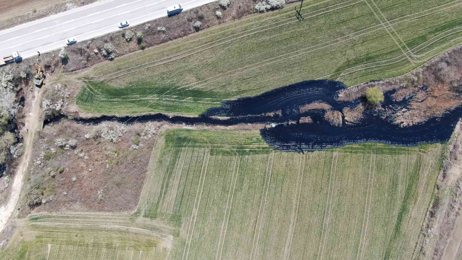 Avrupa’ya açılan Hamzabeyli Sınır Kapısı yolu istikametinde Hasanağa Köyü mevkiindeki asfalt şantiyesinin fuel oil kazanın patlaması sonucu kazandan akan asfalt yapımında kullanılan yaklaşık bin 500 ton kimyasal attık tarım arazilerine yayıldı. Tonlarca ham madde ziftin tarım arazilerine yayılma anları drone ile havadan görüntülendi.