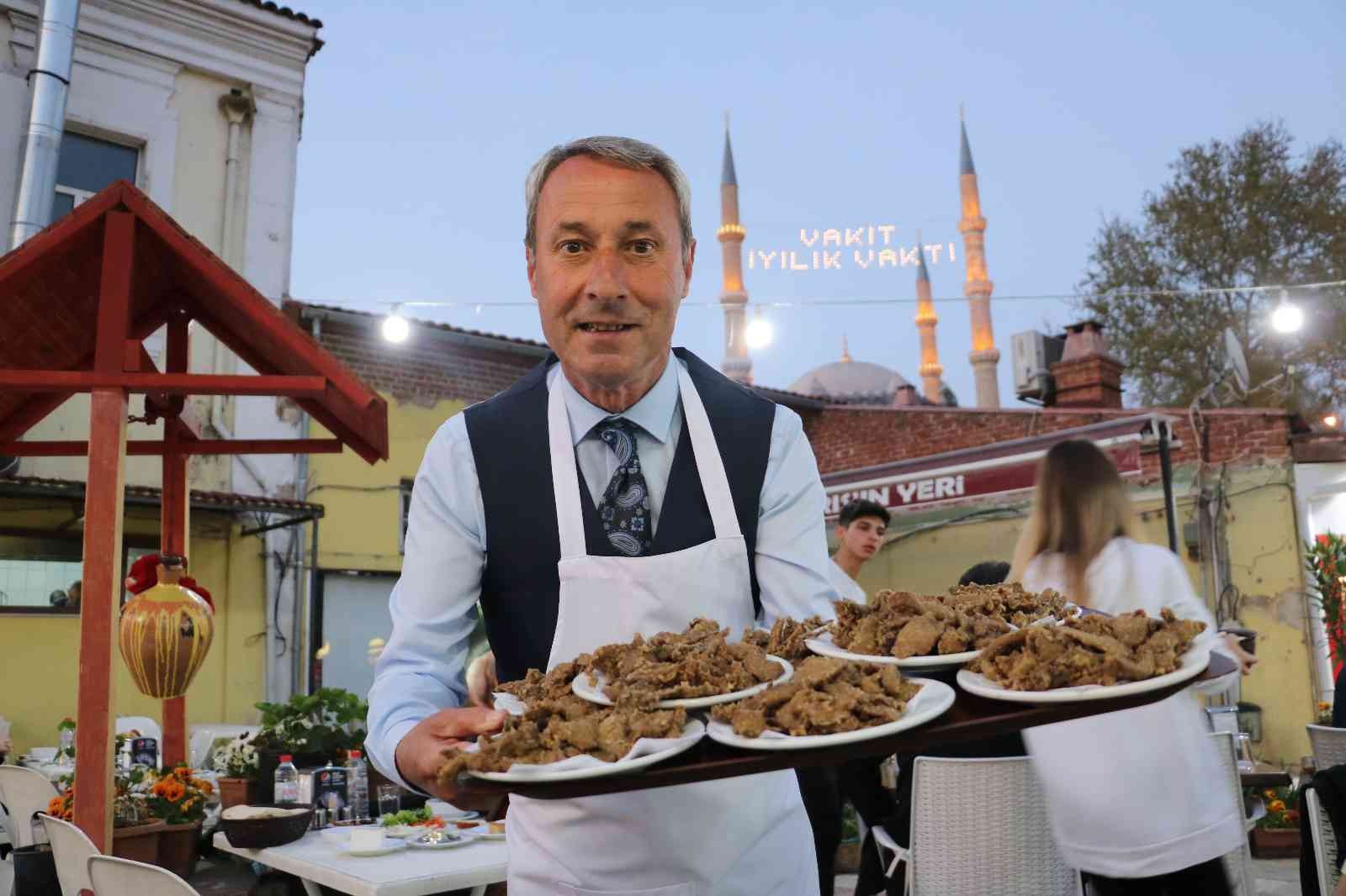 Ramazan ayı dolayısıyla kentin tarihi ve turistik noktalarını gezmeye gelen yerli ve yabancı turistler, iftarda oruçlarını Edirne’nin tescilli lezzetleri arasında yer alan “tava ciğer” ile açıyor.