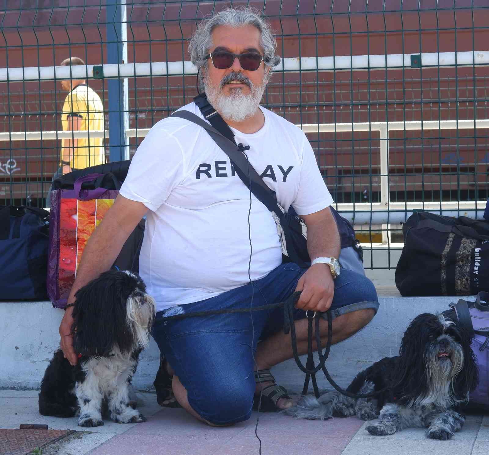 İngiltere’den Türkiye’ye gelen gurbetçi Hüseyin Doğan, köpekleriyle yolculuk yaptı.
