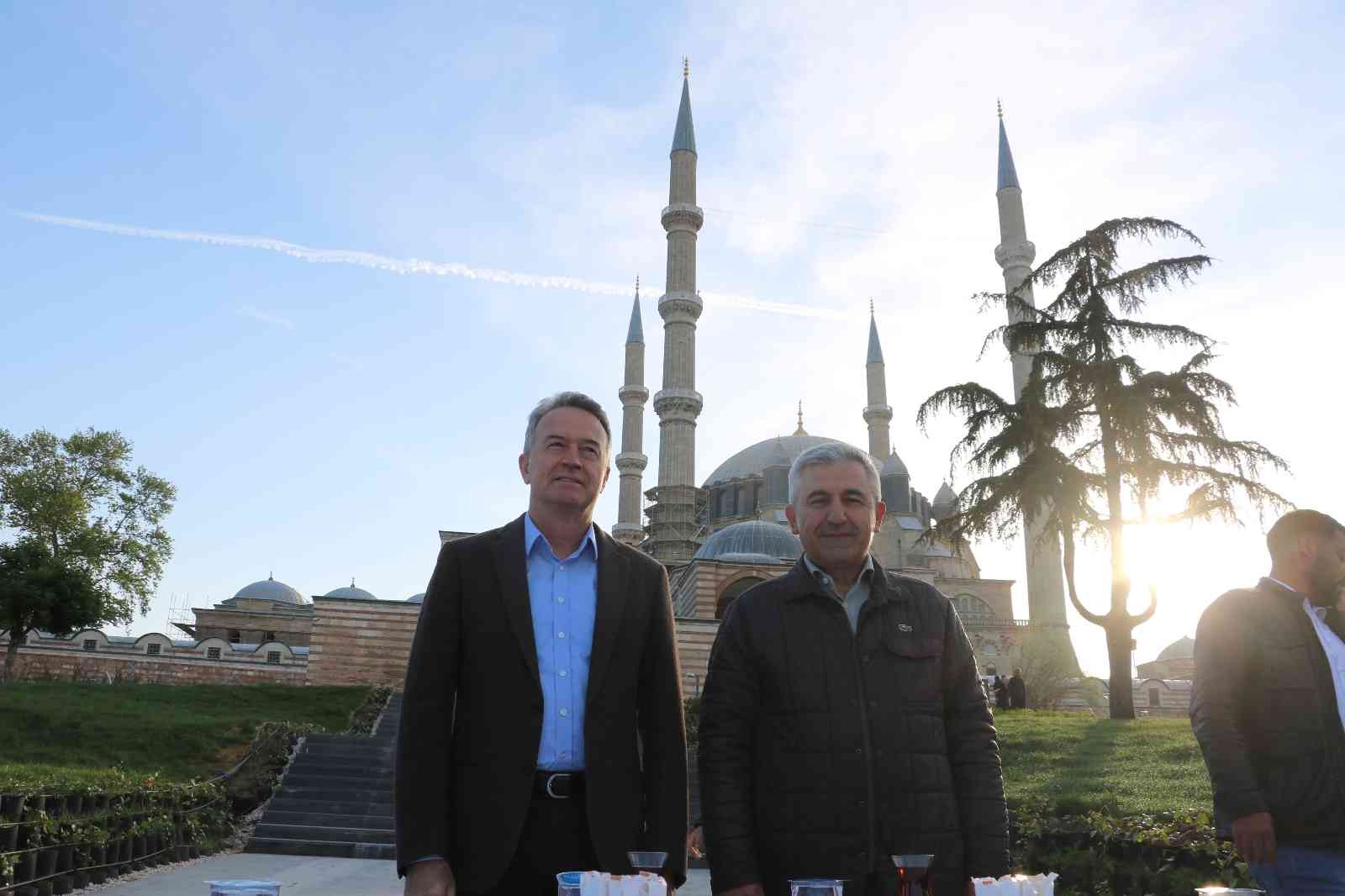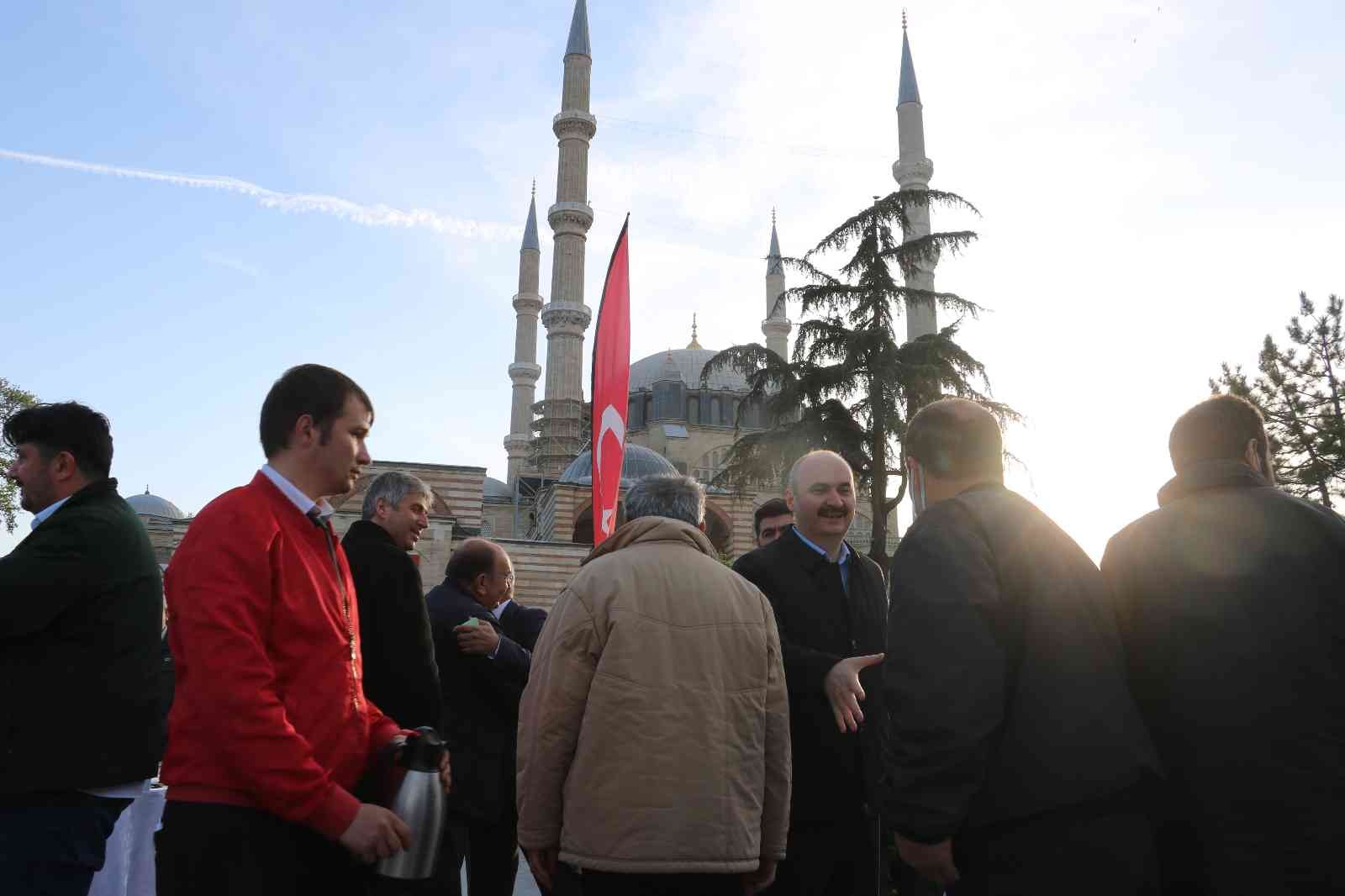 Cumhurbaşkanı Recep Tayyip Erdoğan’ın talimatıyla düzenlenen Selimiye Camii meydanında Edirne Valisi Ekrem Canalp, Edirne İl Emniyet Müdürü Mustafa Alçalar ve kurum müdürleri vatandaşlarla bir arada börek ve çay ikramı eşliğinde vatandaşların bayramını kutladı.