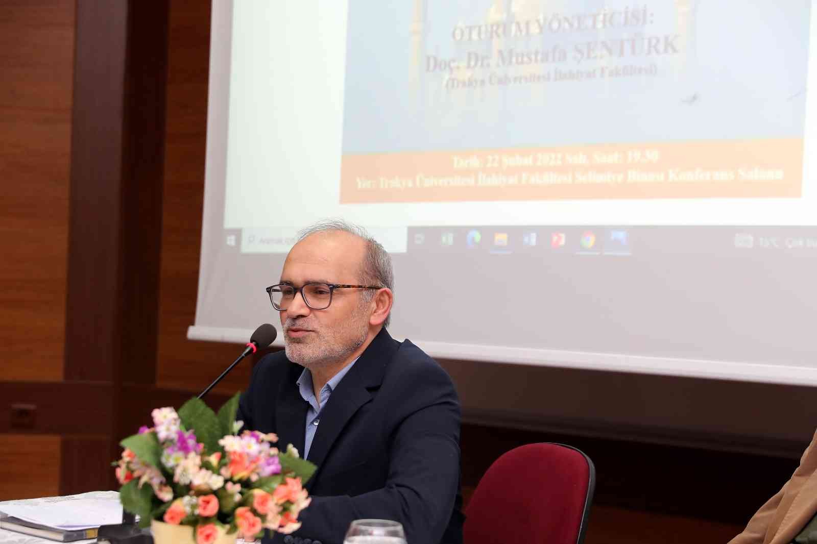 Konferansın açılış konuşmasını gerçekleştiren Rektör Prof. Dr. Erhan Tabakoğlu, “Covid-19 nedeniyle ara verdiğimiz bu konferans dizisini yeniden yüz yüze yapmanın mutluluğunu yaşıyoruz. Selimiye Konuşmaları Konferans dizisinin 36.’sını, İlahiyat Fakültemizin yeni Dekanı Prof. Dr. Ali Öztürk’ün gerçekleştirecek olması da özel bir anlam taşıyor. Ali Öztürk Hocamız, ilahiyat ve İslam ilimleri alanında derin bir birikime sahip, konusunda uzman ve bu zamana kadar aldığı her görevi layıkıyla yerine getiren, yaptığı işlere değer katan bir hocamız. Aynı özveriyle çalışarak Fakültemize de çok önemli değerler katacağına inanıyorum. Trakya Üniversitesi İlahiyat Fakültemizin amacı her şeyden önce İslam dinini doğru anlayan ve anlatan evlatlar yetiştirmek. Hem bölgemize, hem Balkanlara, hem de soydaş ve akraba topluluklarımıza hizmet edecek, başarılı ve İslam ilmine hakim evlatlar yetiştirmek için elimizden gelini yapıyoruz. Günümüzde İslam’a ve İslami değerlere en çok ihtiyaç duyduğuna inandığımız gayrimüslimlere de bu yüce dini doğru bir şekilde anlatacak, ilmini doğru verebilecek evlatlar yetiştirme gayretindeyiz. Bu anlamda değerli Ali Hocamızın ilminden, tecrübelerinden daha çok yararlanacağız. Kendisinin Üniversitemize ve bölgemize değer katacağına ve faydalı işler ortaya konacağına inanıyorum” diyerek konferans serisinin gerçekleşmesinde emeği geçenlere teşekkür etti.