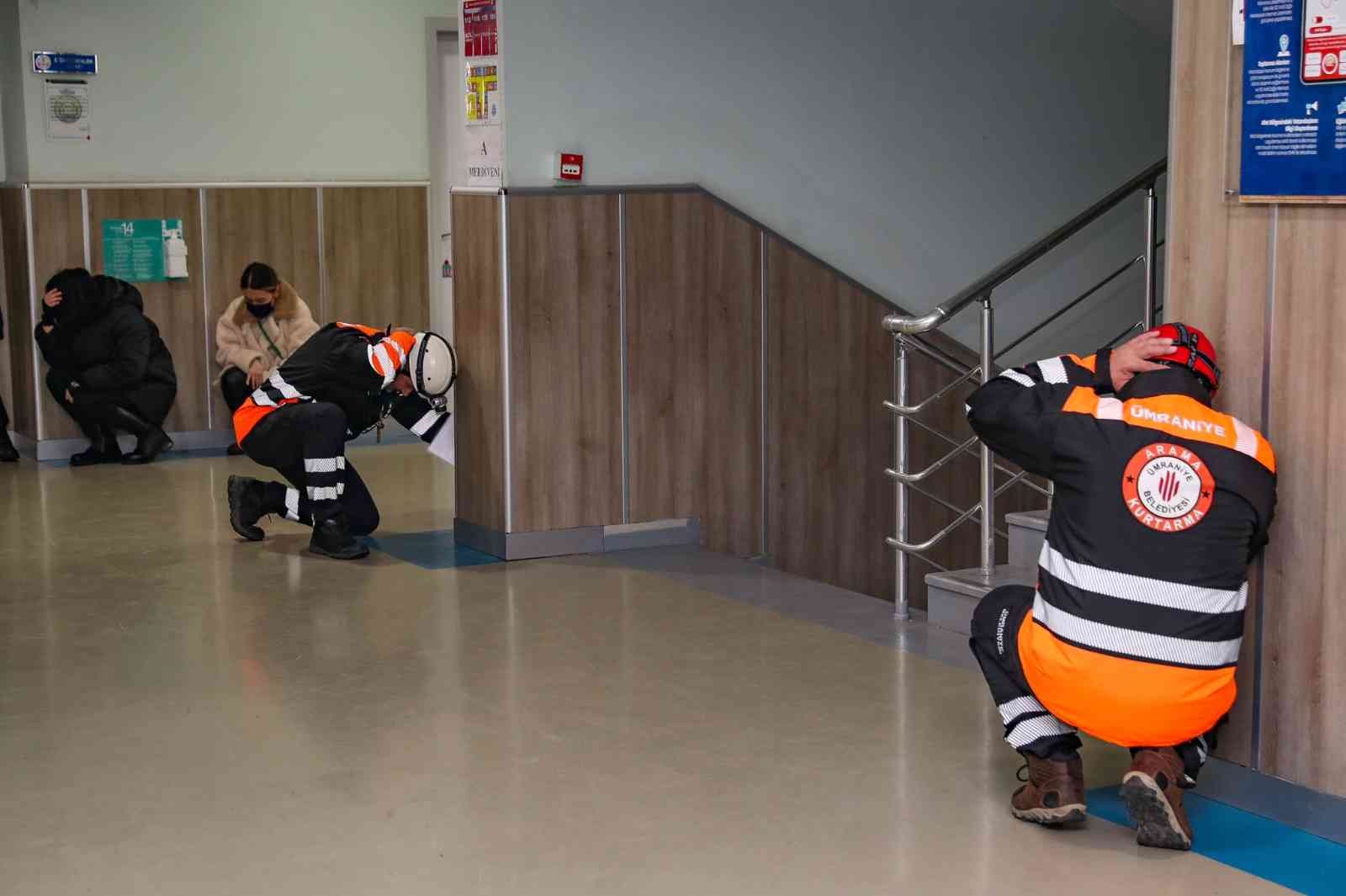 Uyarı ile birlikte sınıflarda eğitim gören öğrenciler Ümraniye Belediyesi Sivil Savunma ve Arama Kurtarma ekipleri tarafından çök, kapan, tutun uygulaması yapıldı.