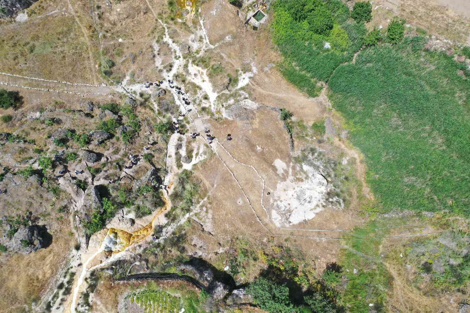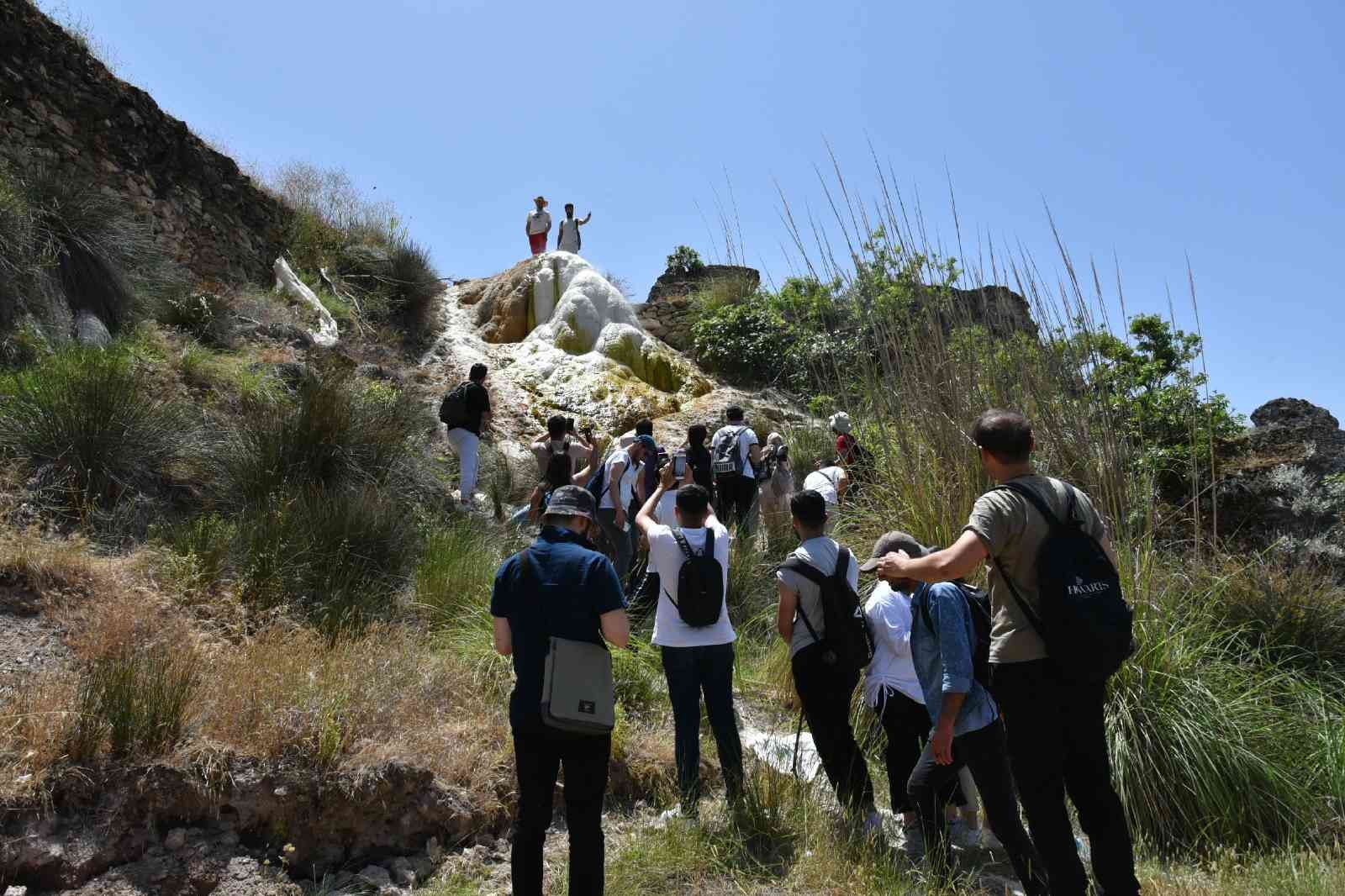Ve bu bağlamda araziye geldik. Arazi de şu an Hisaralan kaplıcalarında ve ya traverten konilerinin olduğu alandayız.