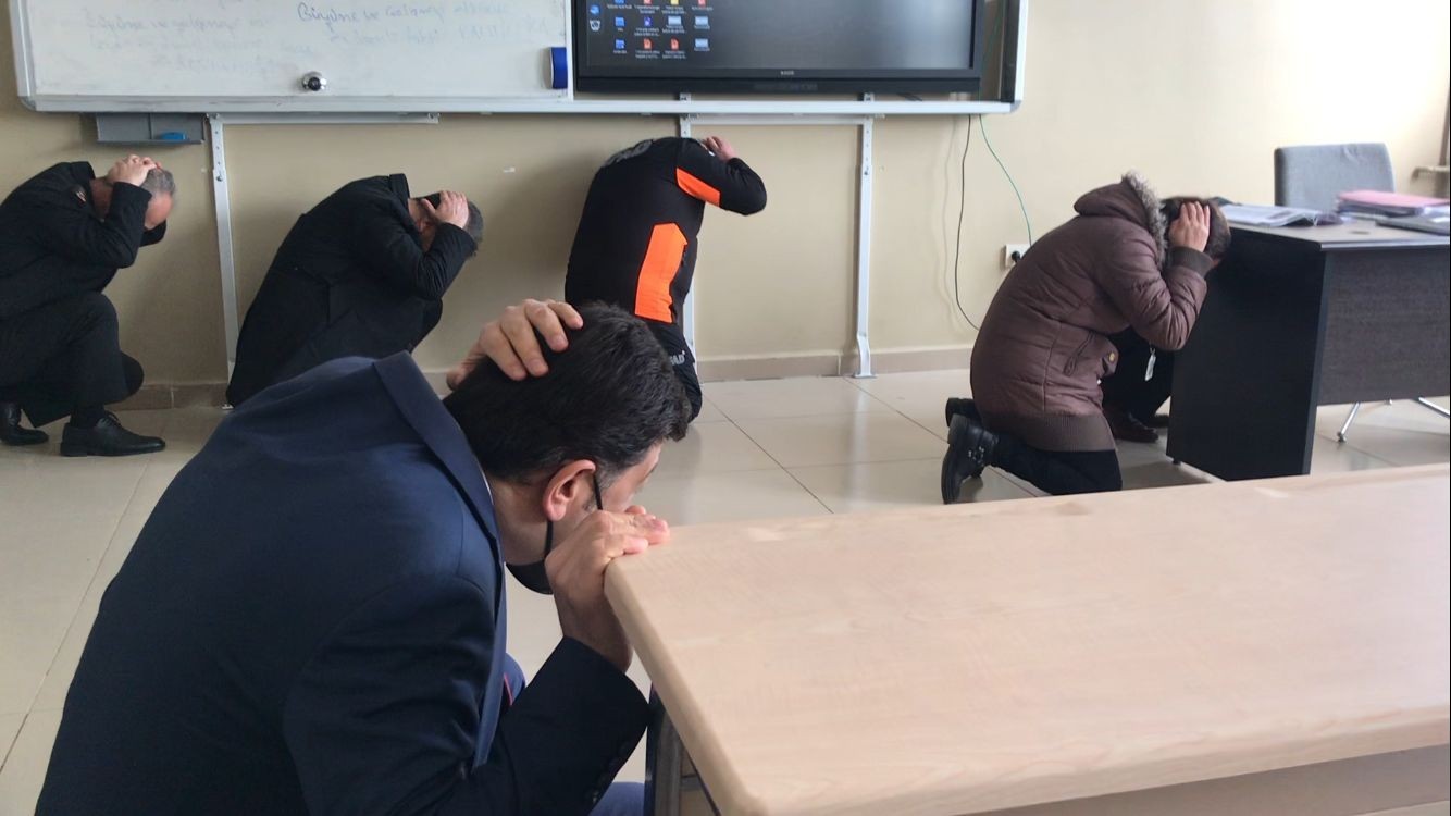 AFAD, UMKE, İtfaiye, Jandarma, Emniyet, Kızılay, İl Sağlık Müdürlüğü ve Arama Kurtarma Derneği AKUT ekiplerinin katıldığı deprem anı tahliye tatbikatında senaryo gereği deprem anında öğrencilerin ders esnasında nasıl hareket edecekleri ortaya kondu.