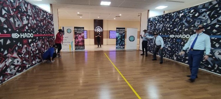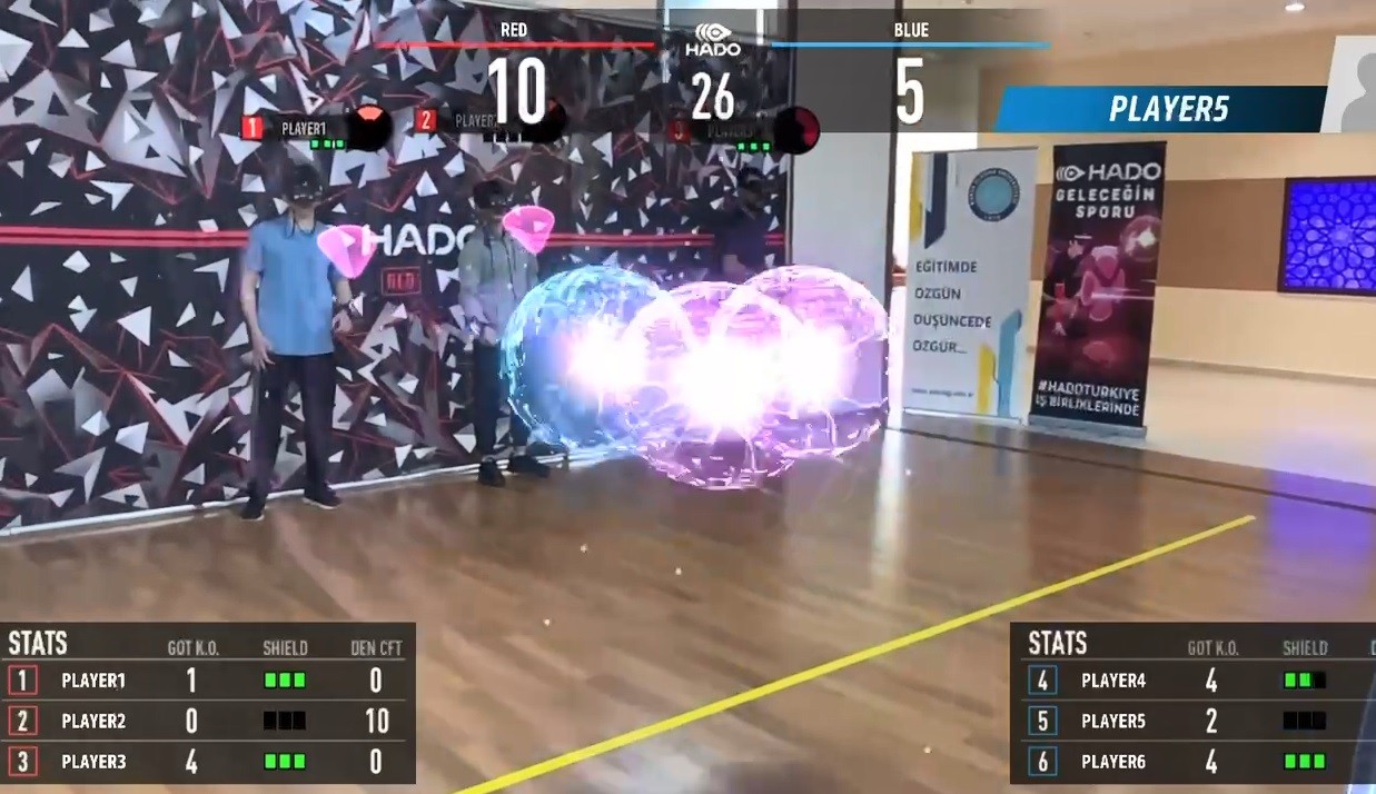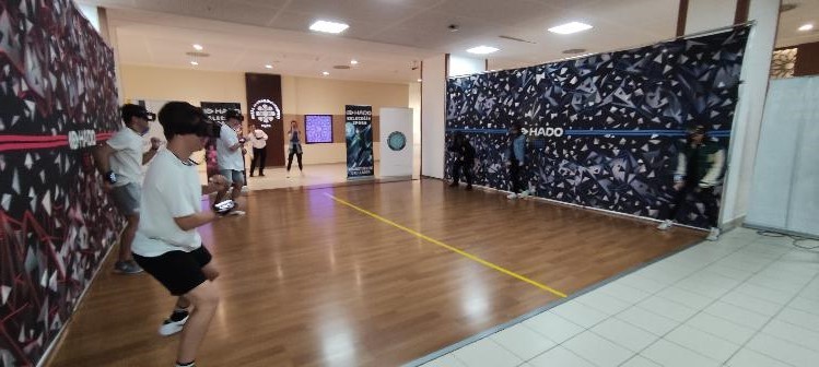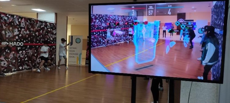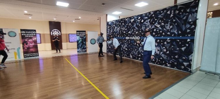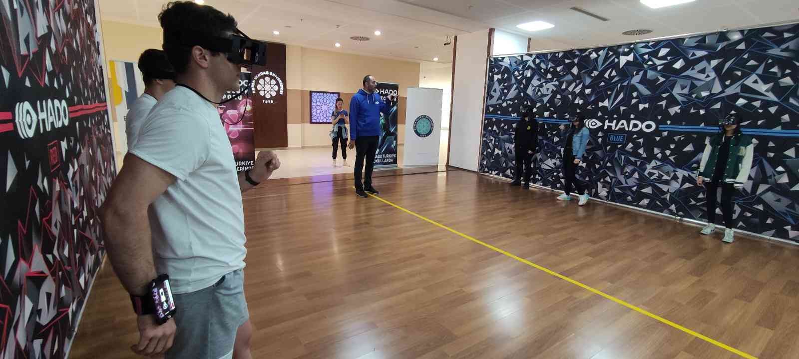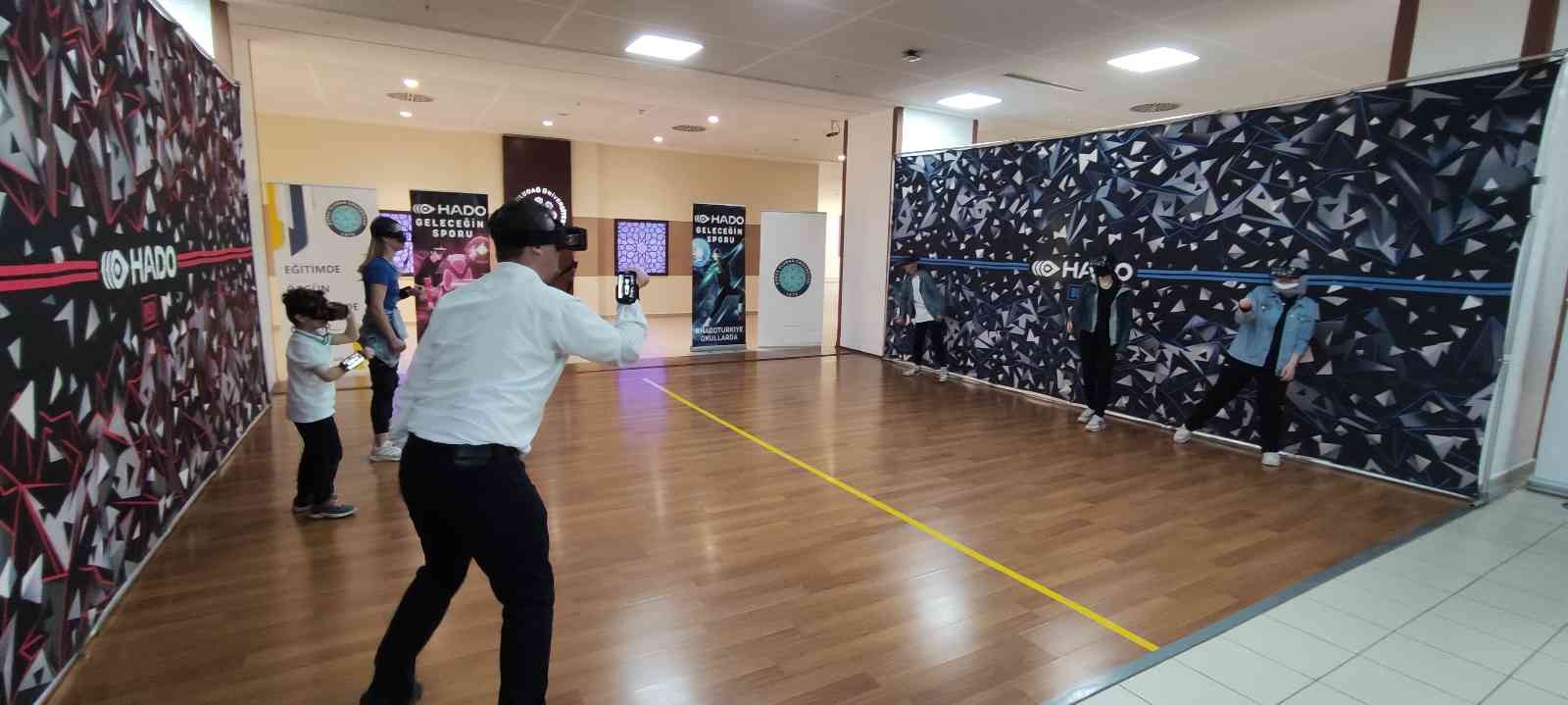 Sanal ortamda hareket ederek gerçekmiş gibi oyun oynayan öğrenciler, “Bugün buraya HADO sporu için geldik.