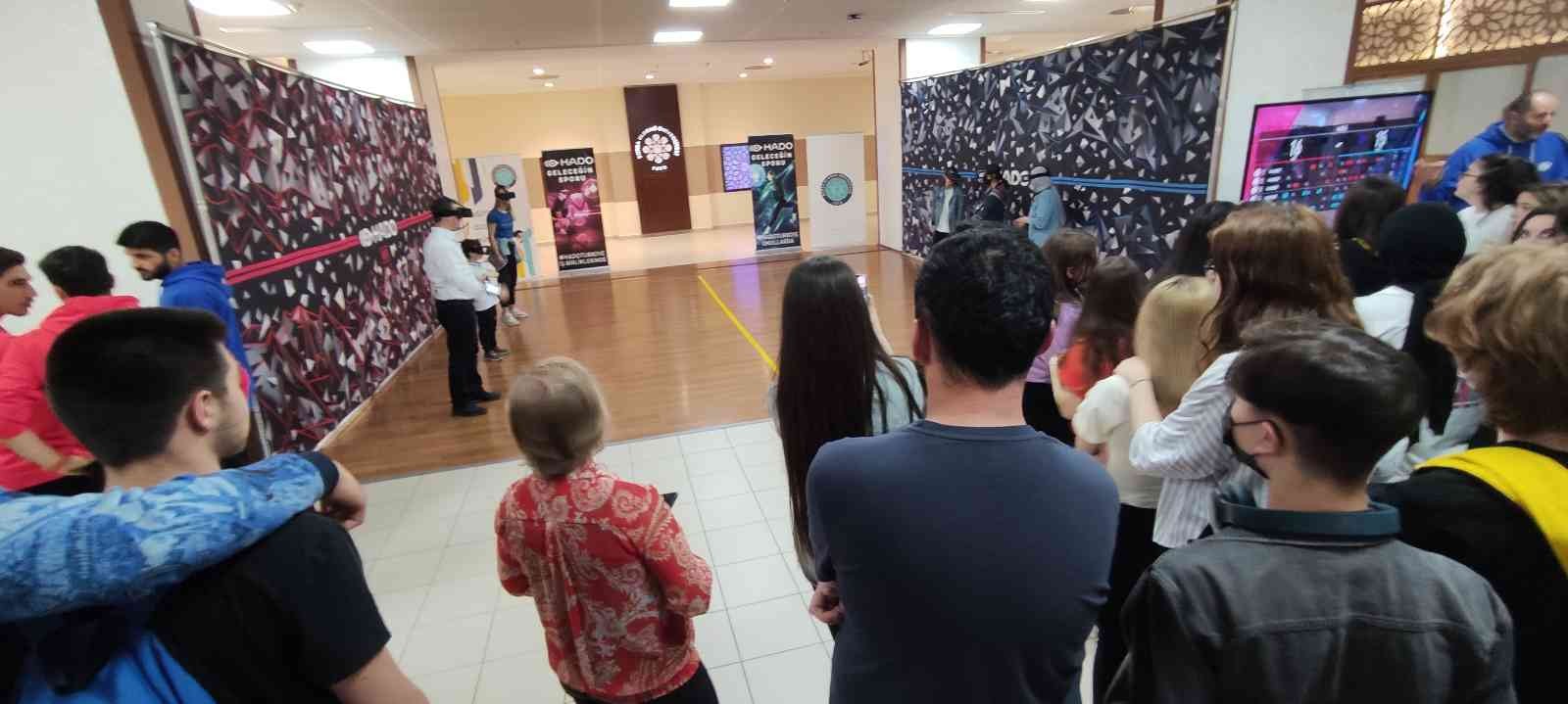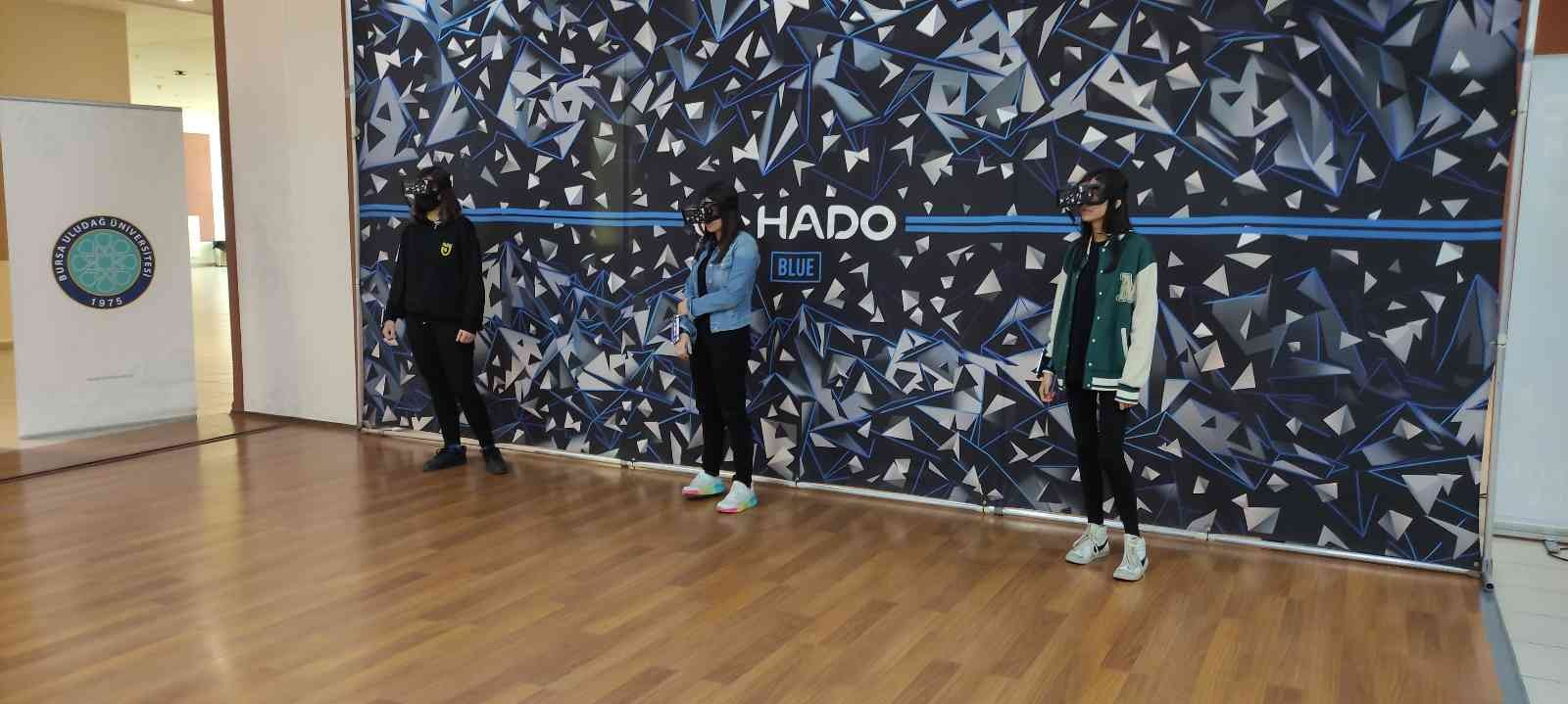 Geleceğin sporu olarak nitelendirilen Japon artırılmış gerçeklik oyunu “HADO”, Bursa Uludağ Üniversitesinde öğrencilerle buluştu. Artırılmış gerçeklik gözlüklerinin yanı sıra özel olarak geliştirilen giyilebilir teknoloji ürünlerinden kol bantlarını takan öğrenciler sanal ortamda 3’er kişilik guruplar halinde oyun oynadı. Sanal gözlükler sayesinde kendilerini oyunun içinde bulan öğrenciler sanal ortamda gerçekmiş gibi kendilerine top atıp onlardan kaçmaya çalışarak oyun oynadı.