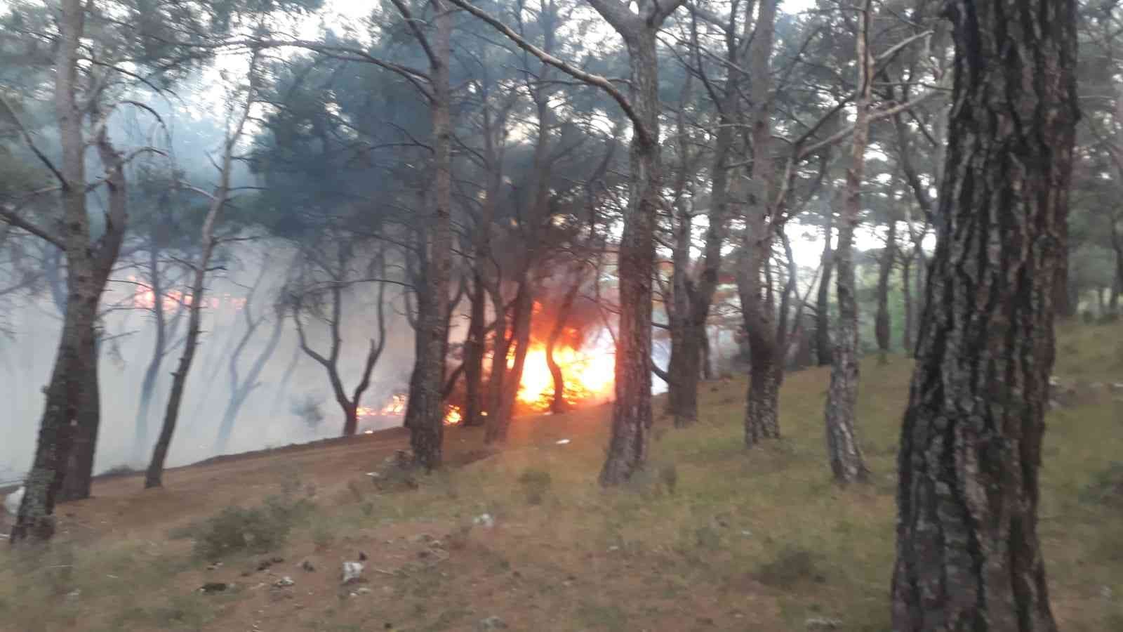 Edinilen bilgiye göre, Burhaniye ilçesi Pelitköy Mahallesi kırsalında çam ormanında çıkan yangın lodos fırtınasının etkisiyle kısa sürede büyüdü.