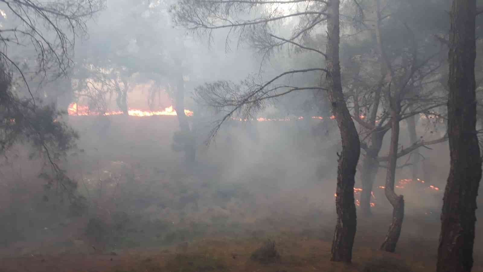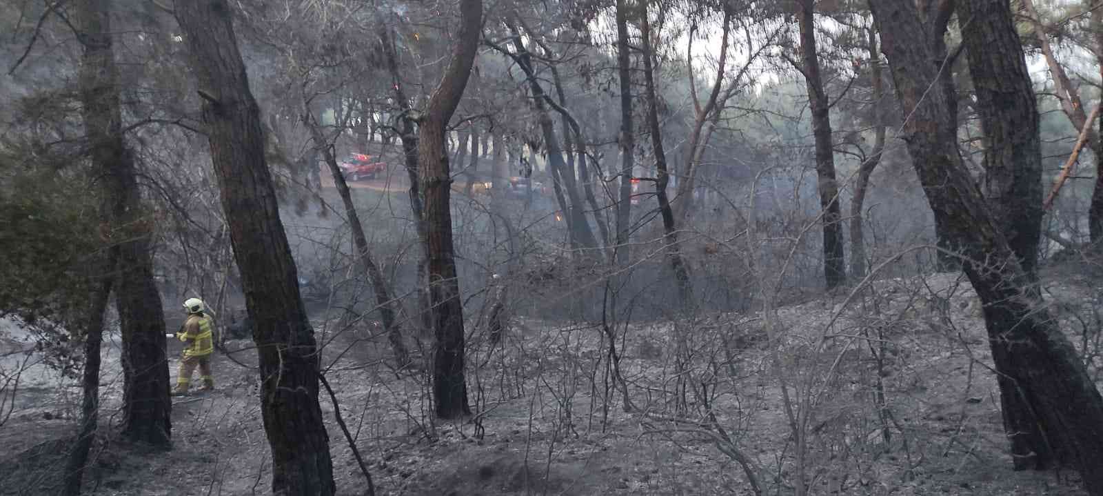 Şiddetli rüzgara rağmen kısa sürede kontrol altına alınan orman yangını söndürüldü.
