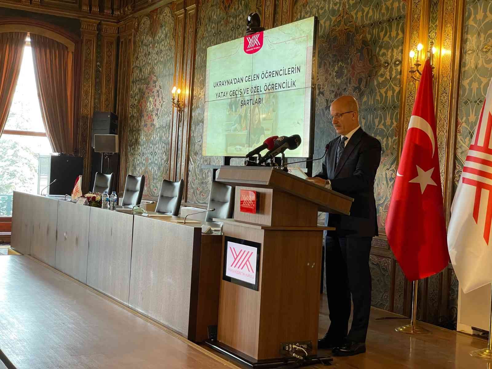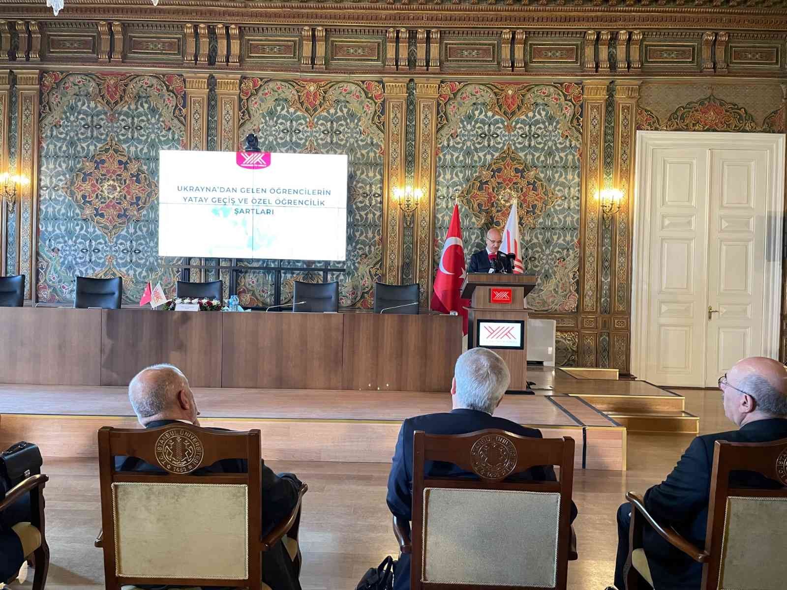 Yükseköğretim Kurulu (YÖK) İstanbul Üniversitesi Rektörlük binasında Ukrayna’dan gelen öğrencilerin yatay geçiş ve özel öğrencilik şartlarının açıklandığı bir basın toplantısı düzenledi. Düzenlenen basın toplantısına YÖK Başkanı Prof. Dr. Erol Özvar, İstanbul Üniversitesi Rektörü Mahmut Ak, YÖK Başkanvekili Prof. DR. M.İ. Safa Kapıcıoğlu, YÖK Başkanvekili Prof. Dr. Rahmi Er, YÖK Genel Sekreteri Süleyman Necati Akçeşme, YÖK Yürütme Kurulu Üyesi Prof. Dr. Naci Gündoğan, YÖK Yürütme Kurulu Üyesi Prof. Dr. Ömer Açıkgöz, YÖK Yürütme Kurulu Üyesi Prof. Dr. Metin Topçuoğlu da katıldı.