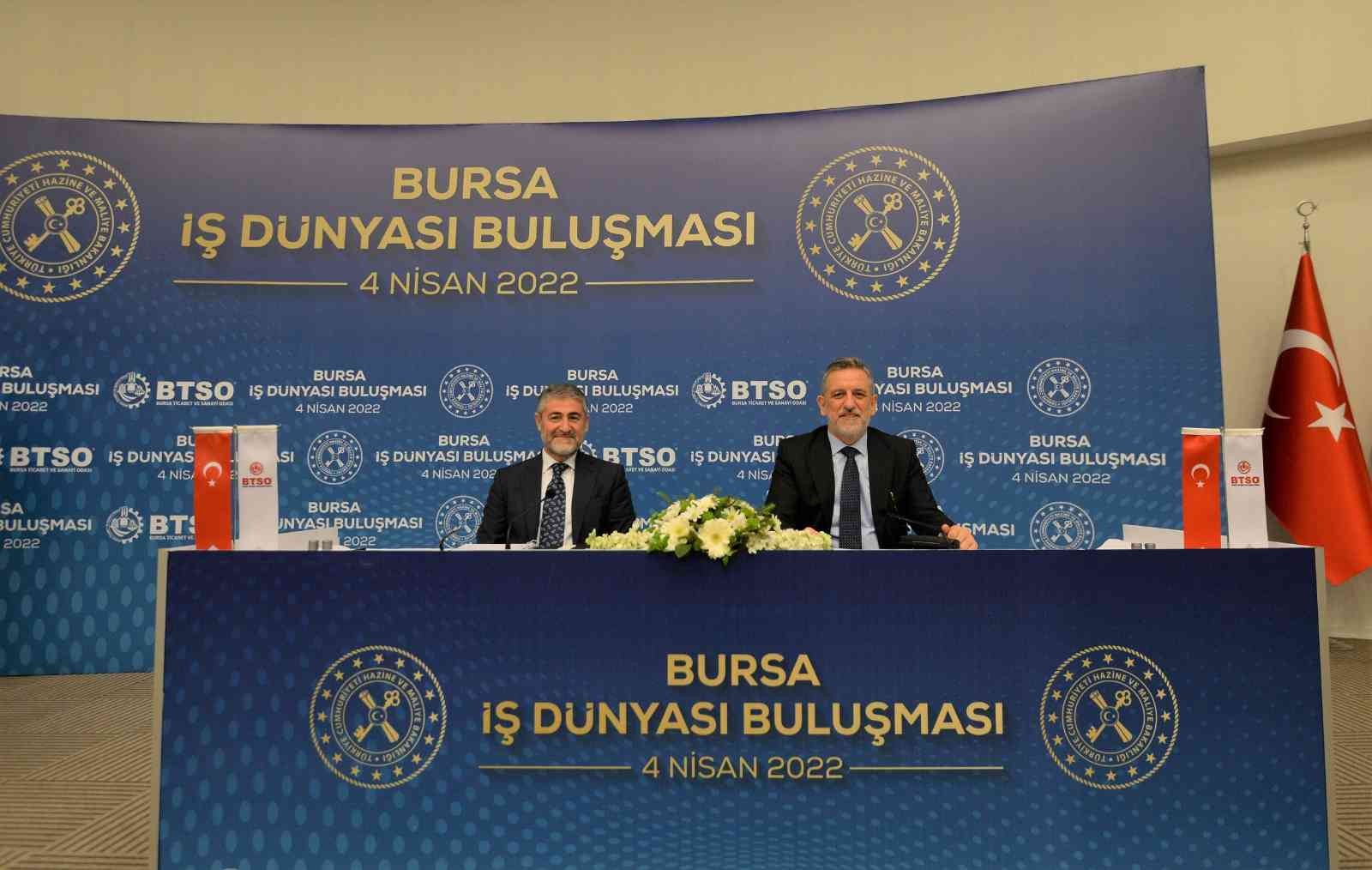 Hazine ve Maliye Bakanı Nureddin Nebati, doğal güzellikleri yeşil dokusu teknoloji ve sanayiyi bir araya getiren Osmanlı İmparatorluğu’nun ilk başkenti Bursa’da iş insanları ile birlikte olmaktan dolayı memnuniyet duyduğunu söyledi. Bursa’nın ekonomik yönüyle aktif ve yönlendirici bir güce sahip olduğunu kaydeden Nebati, “Otomotiv, tekstil, makine, metal imalatı, gıda, mobilya gibi alanlarda güçlü üretim kapasitesine sahip Bursa, Türkiye’nin kalkınmasında ekonomik büyümesine katkı sunmaktadır. TOGG’un otomotiv sanayinin kalbi Bursa’da yola çıkması bunun en önemli göstergelerinde bir tanesidir” dedi.