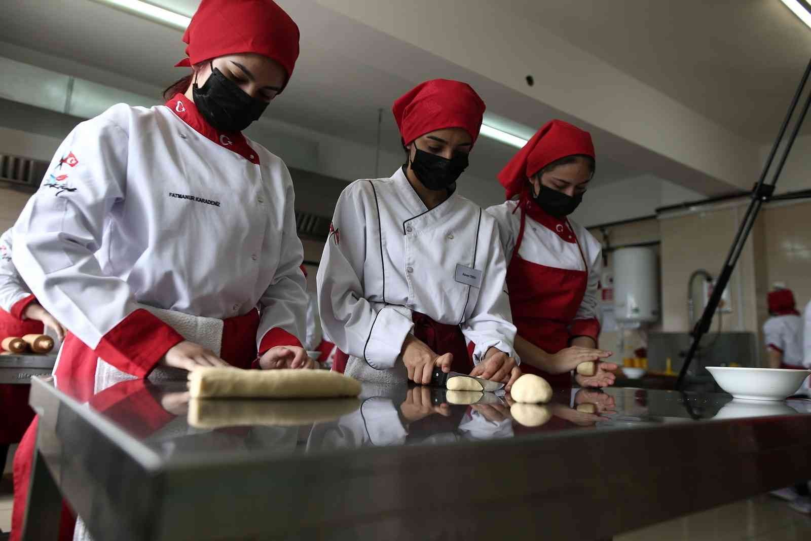 Okulun öğrencilerinden Kevser Tekin, piyasada kadın baklava ustalarının olmadığını ve bu durumu baklava ustası babasına ilettiğini belirterek, “Öğretmelerimizle ve baklava ustaları ile baklava yapmayı öğrendik.