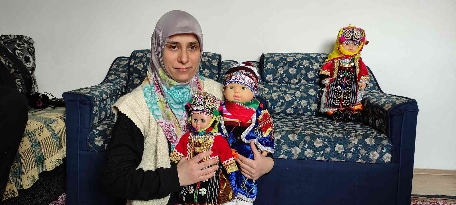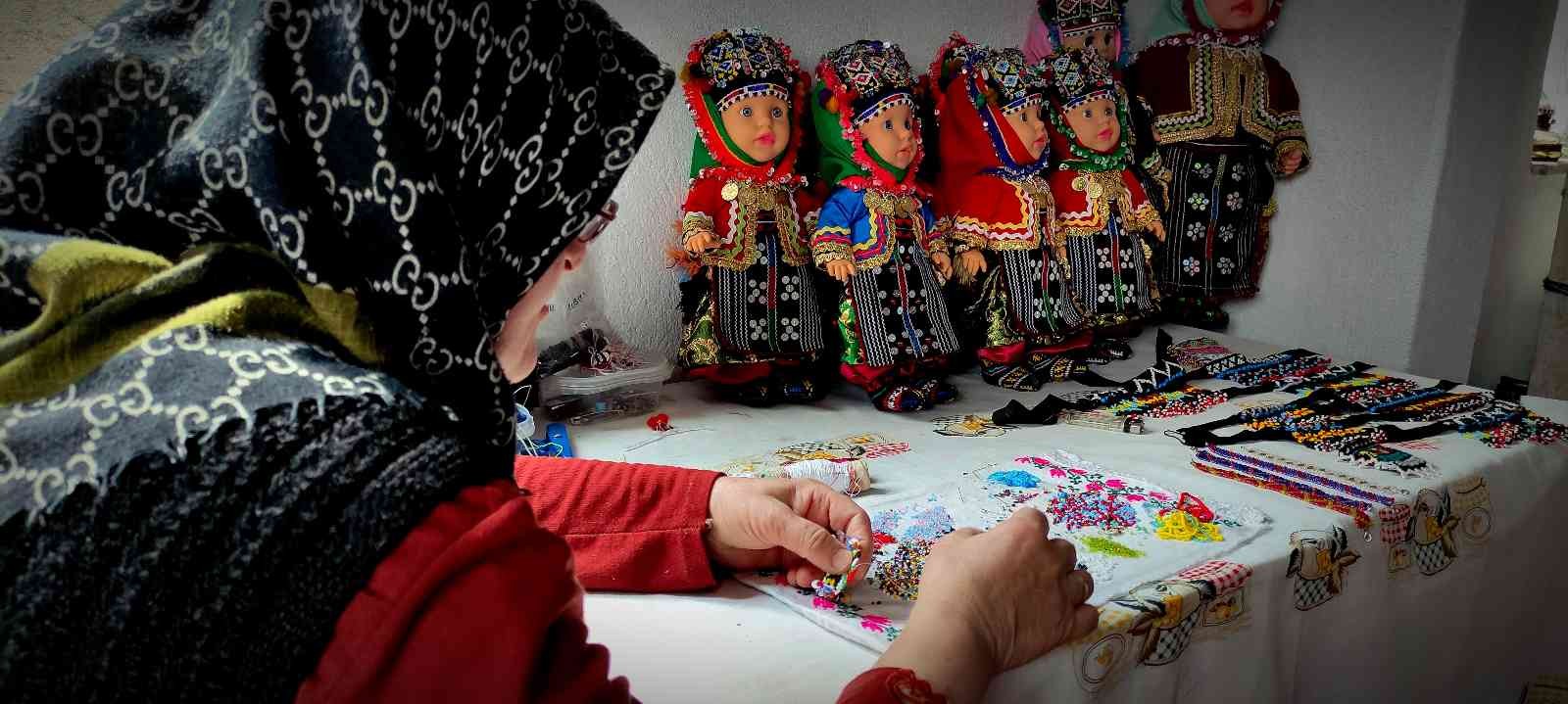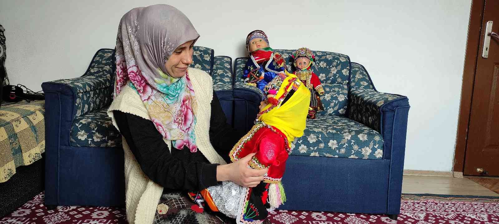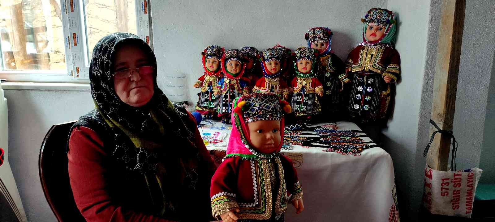 Köyde bebek üretimi ve usta öğreticilik yapan Emine Çiçek, “Oyuncak bebeklere yöresel kıyafetlerimizi giydiriyoruz. Ben hem üretim yapıyorum hem de bu işi öğretiyorum.