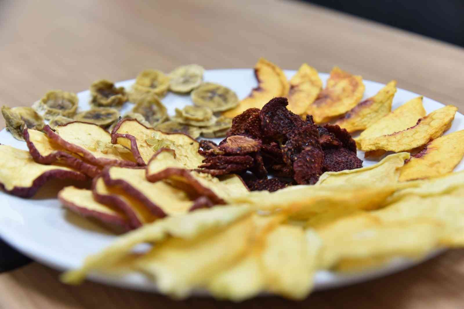 Cips kıvamını alan meyve ve sebzeler damak tadına hitap ediyor.