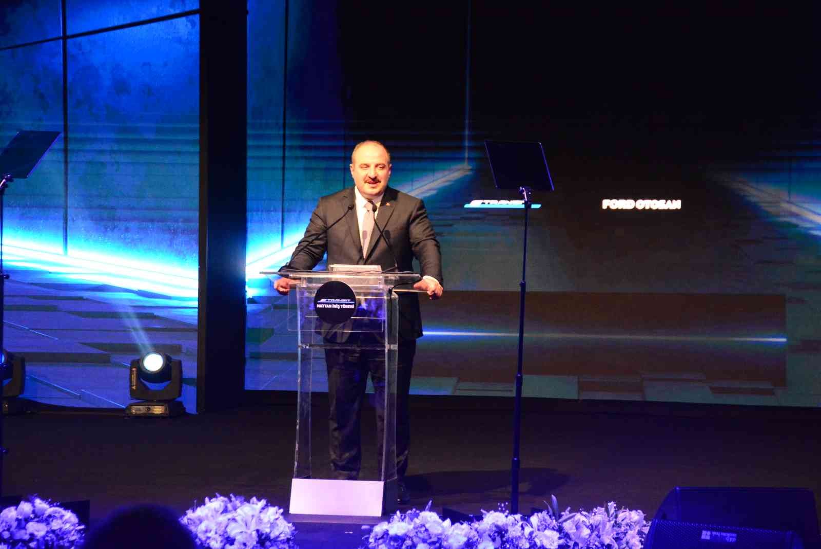 Türkiye’nin otomotiv sanayisi için önemli bir güne şahitlik edildiğini söyleyen Sanayi ve Teknoloji Bakanı Mustafa Varank, “10 yıla yayılan büyük bir vizyonun ilk adımlarından biri, Ford Otosan tarafından Avrupa pazarına ihraç edilecek E-Transit’in ilk aracı üretim bandından iniyor. Ford Otosan geçtiğimiz yıl Cumhurbaşkanı Recep Tayip Erdoğa’ın katıldığı bir toplantıyla 2 milyar avroluk yatırım planını kamuoyuna açıklamıştı. İşte bu yatırım o gün açıklanan vizyonun ilk aşaması. Yüzde 100 elektrikli ticari araç yatırımıyla Ford Otosan’ın üretim kapasitesi 455 binden 650 bine çıkıyor. Böylelikle Ford Otosan Avrupa’nın ticari araç üretim üssü unvanını taçlandırmış olacak. İhraç edilecek bu araçlar ihracat şampiyonu unvanını da perçinleyecek.