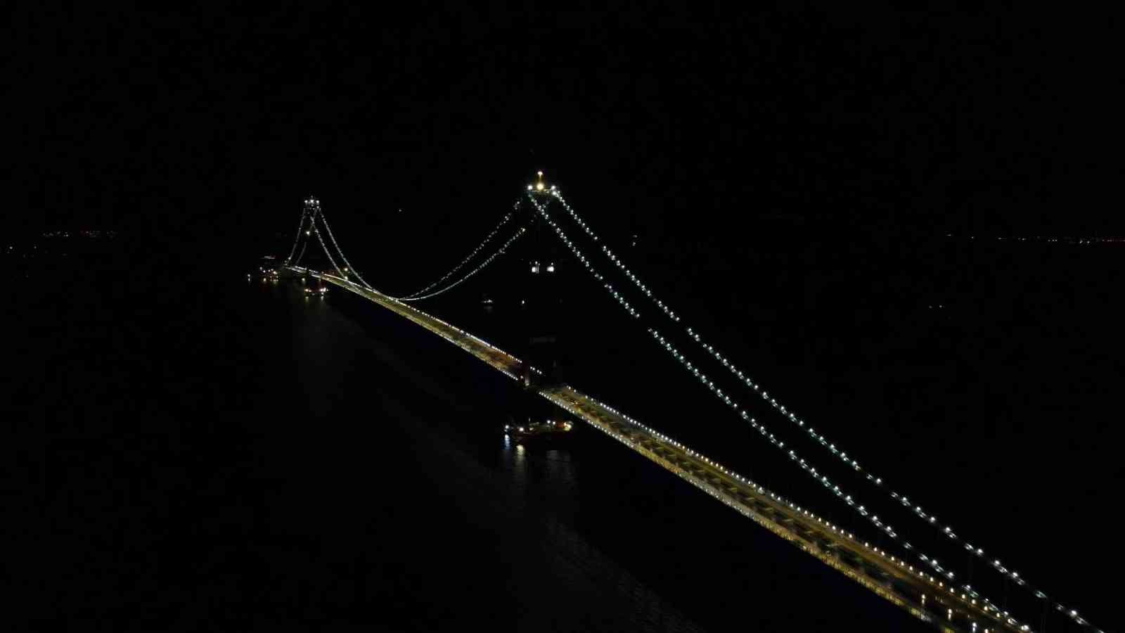Dünyanın en büyük orta açıklıklı asma köprüsü olan 1915 Çanakkale Köprüsü olan 1915 Çanakkale Köprüsü’nün açılışına günler kaldı. Cumhurbaşkanı Recep Tayyip Erdoğan’ın katılımıyla 18 Mart Cuma günü açılacak olan köprünün aydınlatmaları geceyi aydınlatıyor. Köprünün hizmete girmesiyle Asya’dan Avrupa’ya geçiş süresi 6 dakikaya inecek.