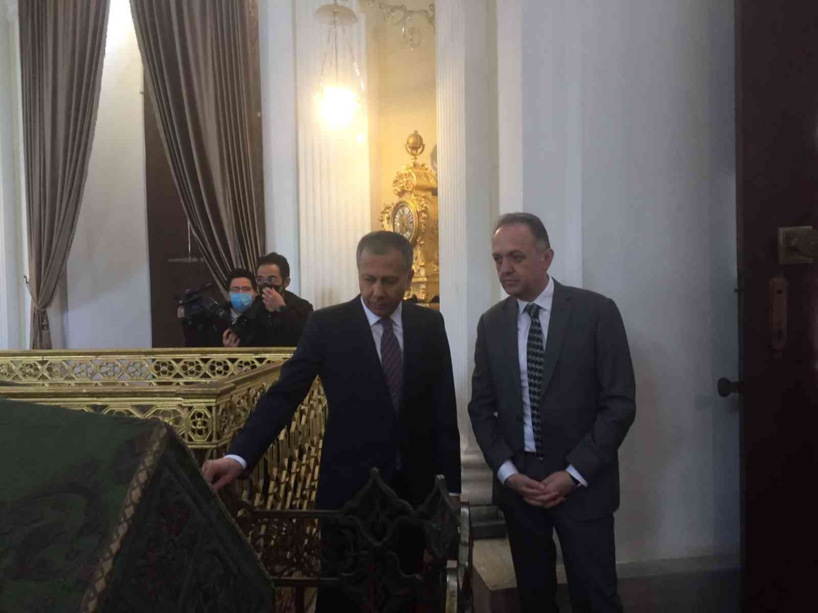 Çemberlitaş’ta bulunan Sultan 2. Mahmut Türbesi ve Nev-i Fidan Kadın Türbesinde restorasyon çalışmalarını inceleyen Kültür ve Turizm Bakanı Mehmet Nuri Ersoy’a İstanbul Valisi Ali Yerlikaya, İstanbul İl Kültür ve Turizm Müdürü Coşkun Yılmaz, Vakıflar Genel Müdürü Burhan Ersoy, Kültür Varlıkları ve Müzeler Genel Müdürü Gökhan Yazgı eşlik etti. Bakan Ersoy, incelemenin ardından basın mensuplarına açıklamalarda bulundu.