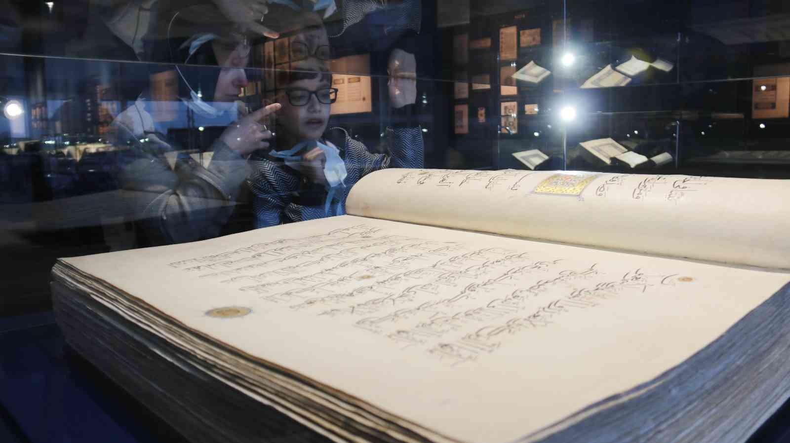 Kur’an-ı Kerim’in indiği ay olan Ramazan’a özel hazırlanan sergide, kâğıdın henüz yazı malzemesi olarak kullanılmadığı 9. yüzyıldan (Abbasi Dönemi) 19. yüzyıla kadar her yüzyıl için seçilmiş bir eser bulunurken, 65 kilogramlık Kuran-ı Kerimi’de serginin en ağır musafı olarak yer alıyor.