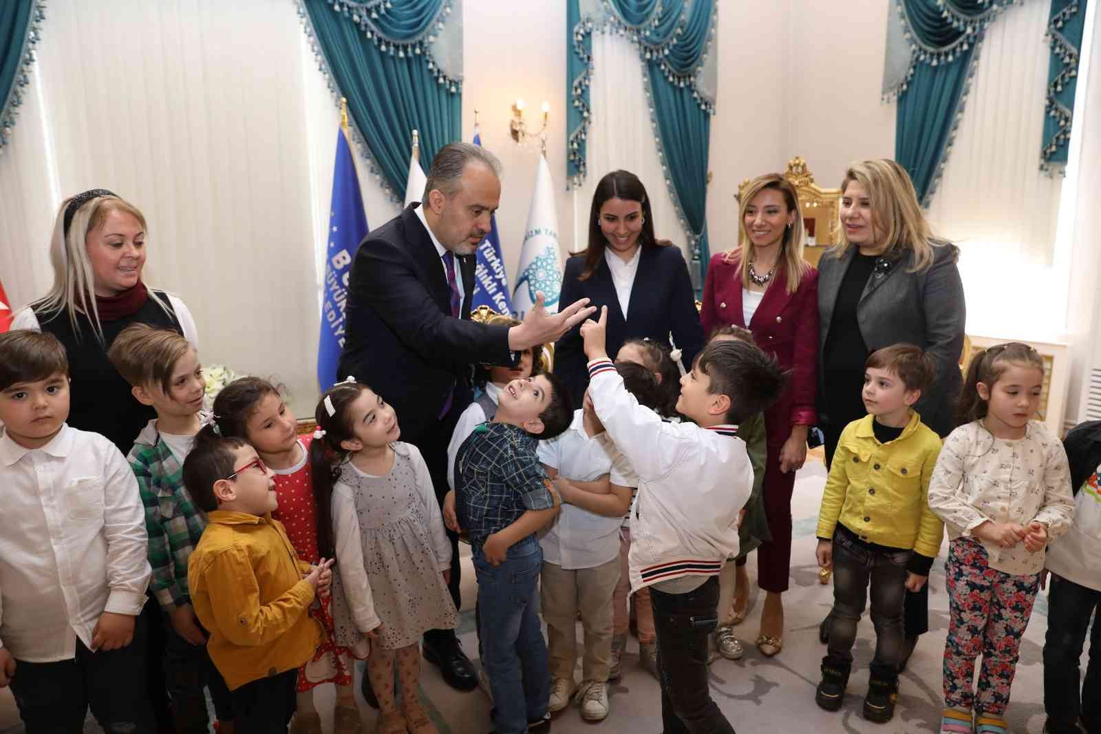 Rol aldıkları ilk filmde geleceğin belediye çalışanları rolünü başarıyla oynayan minikler, tarihi belediye binasında Bursa Büyükşehir Belediye Başkanı Alinur Aktaş’ı ziyaret etti. Filmin ilk gösterimini çocuklarla birlikte izleyen Başkan Aktaş, minik film yıldızlarını tebrik etti.