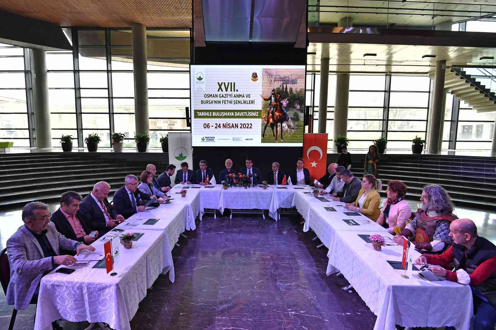Fetih şenliklerinin etkinlik takvimini kamuoyuna açıklayan Başkan Dündar, “Osman Gazi’yi Anma ve Bursa’nın Fethi Şenlikleri’ni, 6 Nisan Çarşamba günü sabah saat 06.00’da Ulucami’de Fetih duasını okuyarak başlatacağız. 8 Nisan Cuma günü Minyatürlü Eserlerde Osmanlı Padişahları ve Sultan III. Mehmed sergisinin açılışını yaparak; 3’üncü Mehmed Dönemi ve Bursa Sempozyumu’nu düzenleyeceğiz. 9 Nisan Cumartesi günü Tophane Meydanı’nında yapılacak olan resmi açılış töreninin ardından Fetih Yürüyüşü’nü gerçekleştireceğiz.