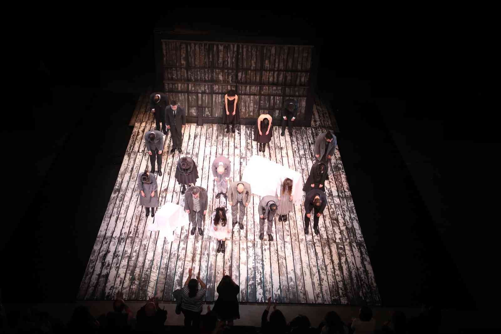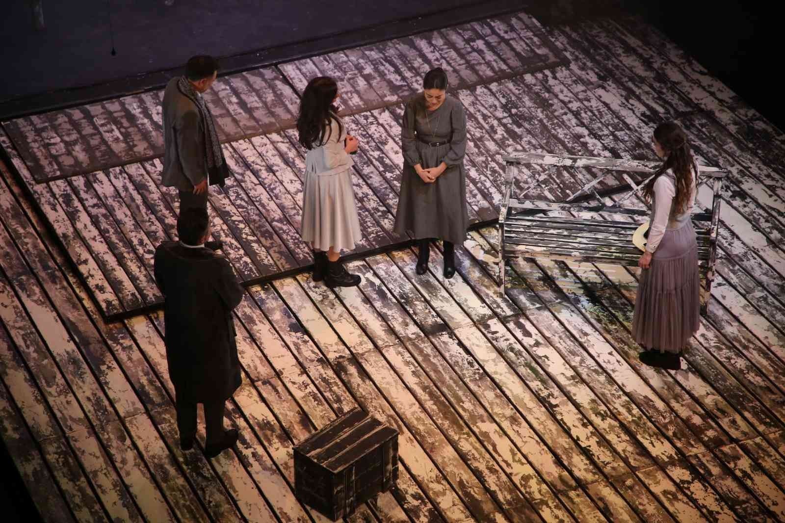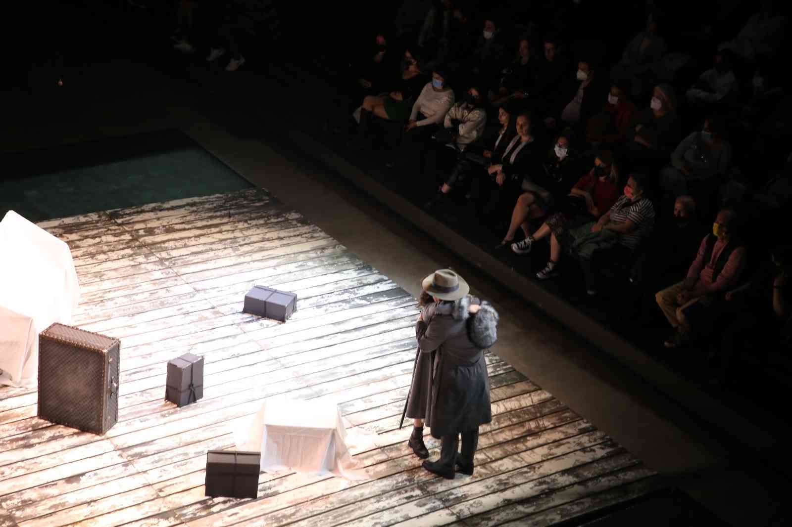 Yoğun katılım sağlandığı tiyatro oyunu dakikalarca ayakta alkışlandı.