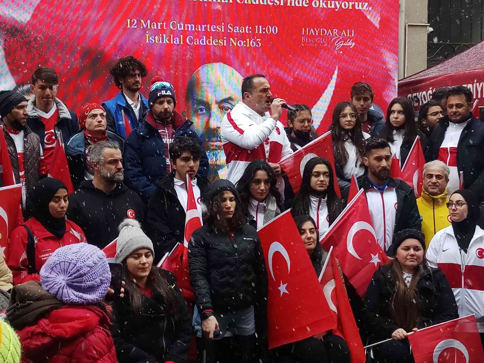 Gençlere inandıklarını dile getiren Beyoğlu Belediye Başkanı Haydar Ali Yıldız, “Türküyle, Kürdüyle, Çerkeziyle, Lazıyla, Boşnağıyla, Romanıyla, Alevisiyle, Sünnisiyle bu toprağın çocuklarıyız. Bu gençler bizim. ‘Korkma’ diyen istiklalimizi ve istikbalimizi ifade eden İstiklal Marşımızı birlikte okuduk.