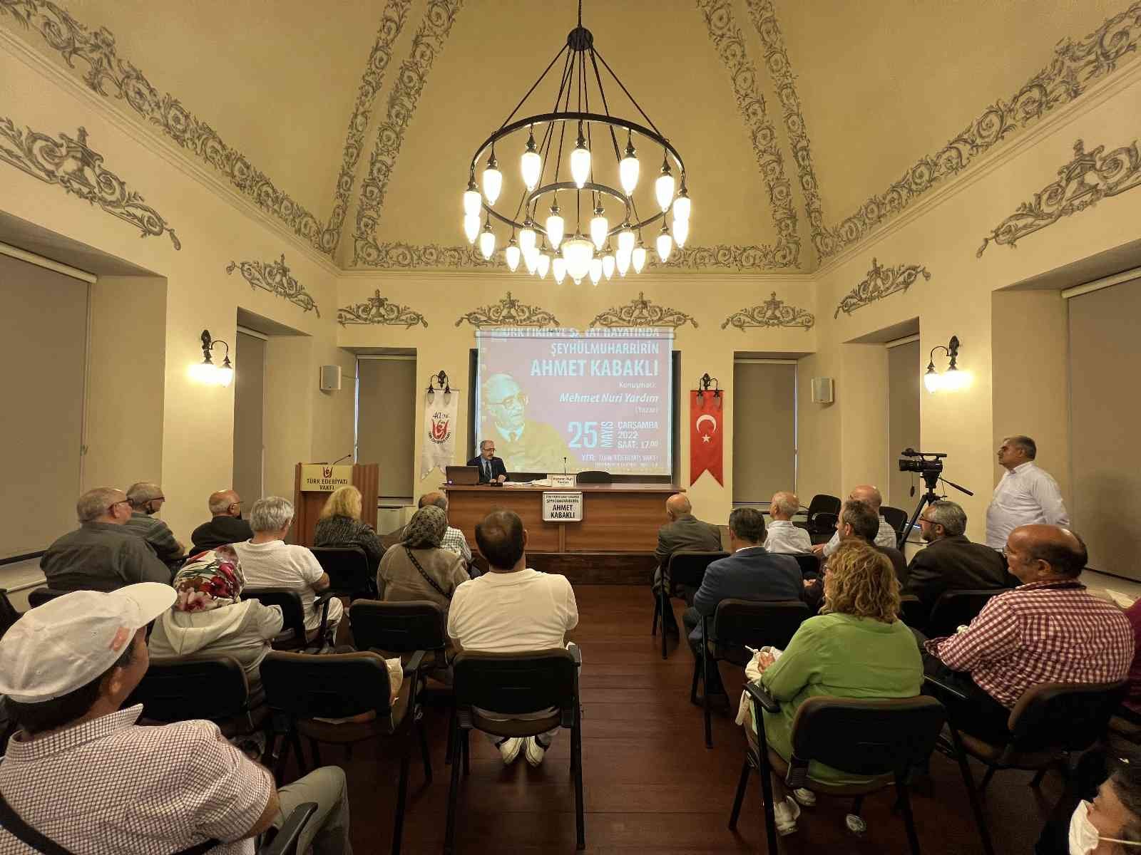 Ömrünü İslam dünyasına adamış Türk Edebiyat Vakfı’nın kurulmasında çok önemli pay sahibi Şeyhülmuharrirîn Ahmet Kabaklı için anma programı düzenlendi. Yazar Mehmet Nuri Yardım, vakıf tarafından düzenlenen ’Türk Fikir ve Sanat Hayatında Şeyhülmuharrirîn Ahmet Kabaklı’ anma programında Kabaklı’yı anlattı.