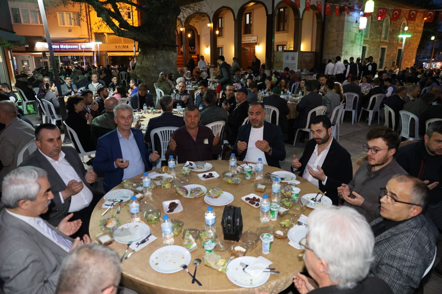Rabbim inşallah Kadir Gecesi ve bayrama da yetişmemizi nasip etsin. İlçemizdeki bir çok çalışmada olduğu gibi bu yemekte de katkısı olan ve rahatsızlığı nedeniyle aramızda bulunamayan Büyükşehir Belediye Başkanımıza teşekkür ediyor ve acil şifalar diliyorum” diye konuştu.