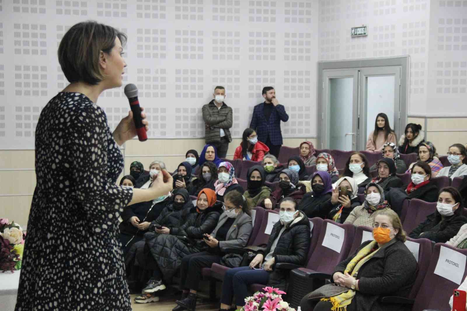 Kadın ve anne olmak üzerine katılımcılara bilgilendirmelerde bulunan başarılı oyuncu Açelya Akkoyun, 8 Mart Dünya Kadınlar Günü’nü de kutlayarak şiddetsiz bir dünya diledi. “İyi Ki Kadınım” kitabını çıkaran Akkoyun, kadınlık yolculuğu ve kadına bakış açısını kitabında değindiğini söyledi.