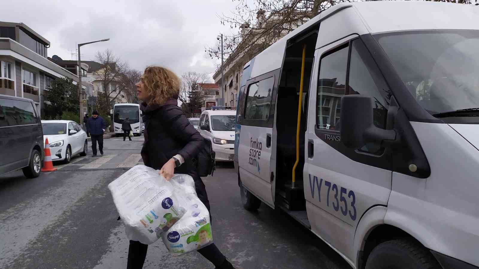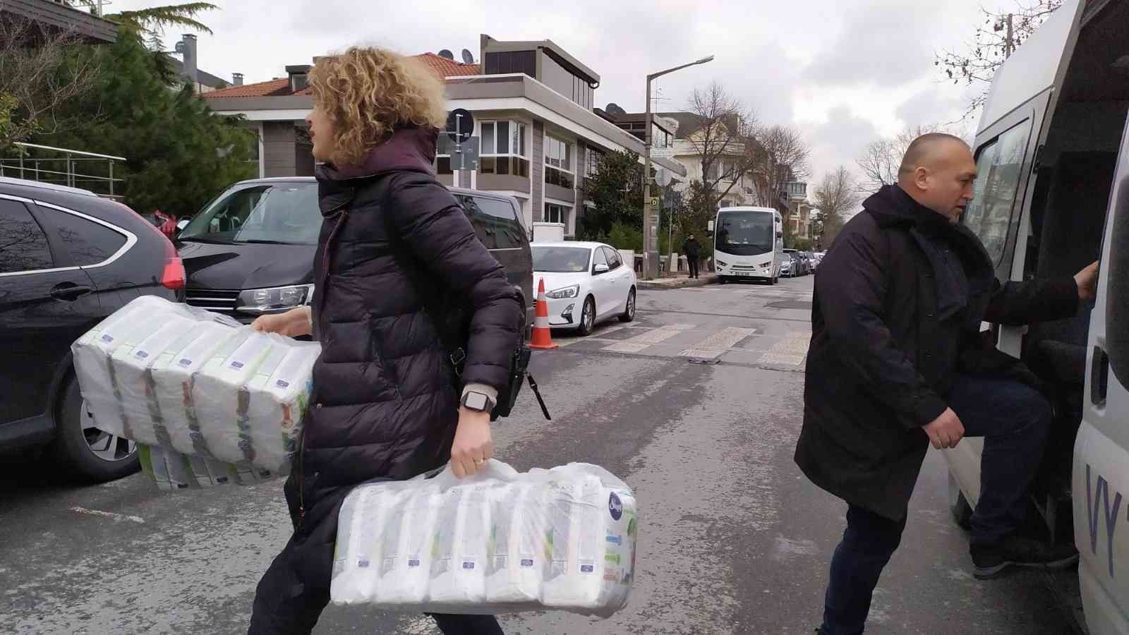 Bakırköy’de bulunan İstanbul Başkonsolosluğuna Ukraynalı ve Türk vatandaşlar tarafından içerisinde çeşitli yardım malzemeleri bulunan koliler getirildi. Getirilen paketlerin içerisinde giysi, ayakkabı, çocuk bezi, mama, ilaç, sargı bezi gibi malzemeler bulunuyor.