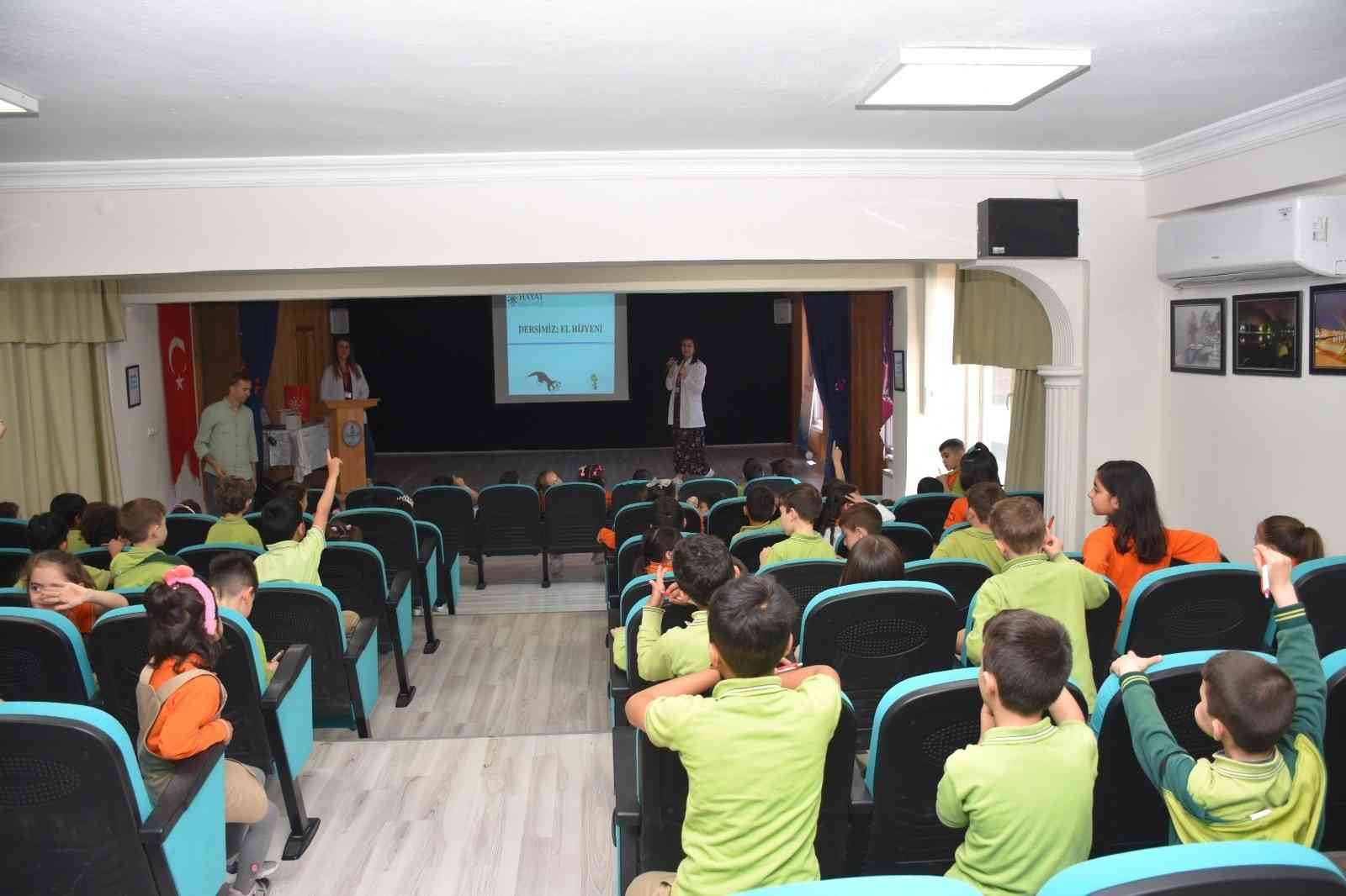 Sosyal sorumluluk projesi çerçevesinde Hayat Hastanesi Eğitim Hemşiresi Büşra Kocaalili ve Enfeksiyon Kontrol Hemşiresi Yasemen Çetinkaya tarafından Erhan Nasyalçın İlköğretim Okulu ve Akıncıtürk İhsan Dikmen İlköğretim okulu öğrencilerine hijyenin önemi anlatıldı.
