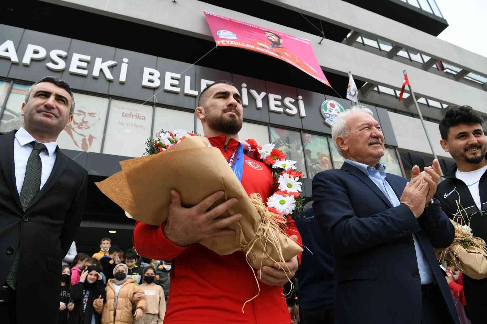 Macaristan’da düzenlenen Avrupa Güreş Şampiyonası’nda Bulgaristanlı rakibi Ahmed Sultanovich Bataev’i yenerek altın madalyayı kazanan Milli Sporcu Feyzullah Aktürk, Çanakkale’nin Lapseki ilçesinde büyük bir coşkuyla karşılandı.