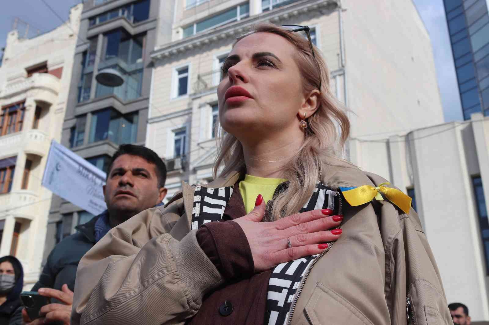 İstanbul’da yaşayan Ukraynalılar Beyoğlu Tepebaşı’nda bir kez daha toplanarak Rusya’nın Ukrayna’daki saldırılarını protesto etti. Yaklaşık 100 kişilik grup savaş karşıtı sloganlar atıp, üzerinde “Savaşa hayır, NATO havayı kapat, Ukrayna’da savaş dursun” yazılı dövizler taşıdı. Bazı eylemcilerin Ukrayna ulusal marşının okunduğu esnada gözyaşlarına hakim olamadığı görüldü.