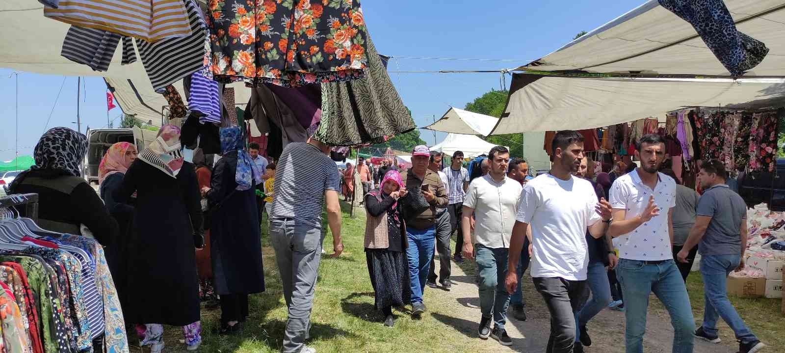 Yılda bir kez kurulan pazarda vatandaşlar bol bol alışveriş yapıyor.