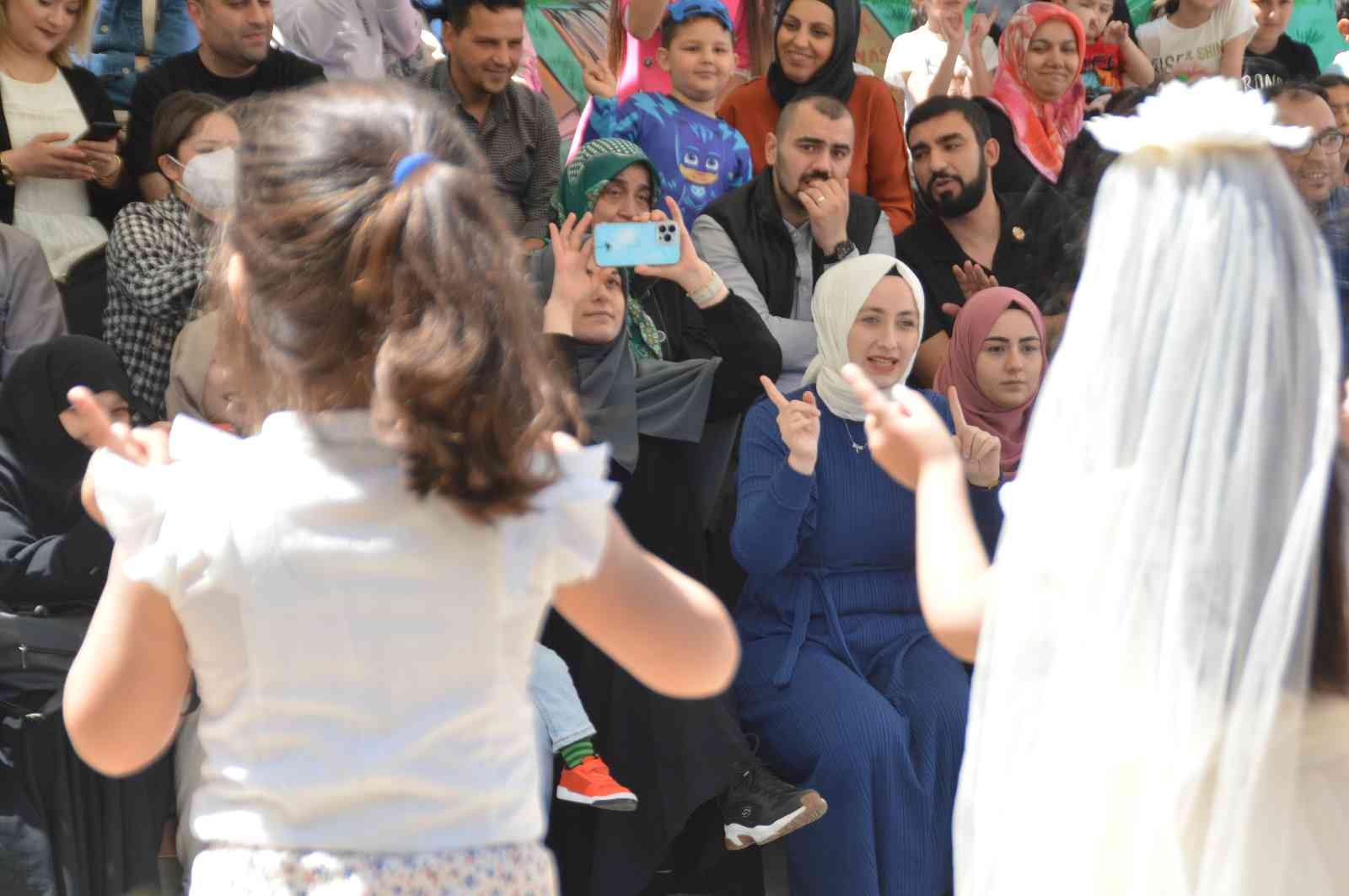 Programda çocukların çizdikleri resimler sergilenirken, ilahiler eşliğinde drama gösterileri gerçekleştirildi.