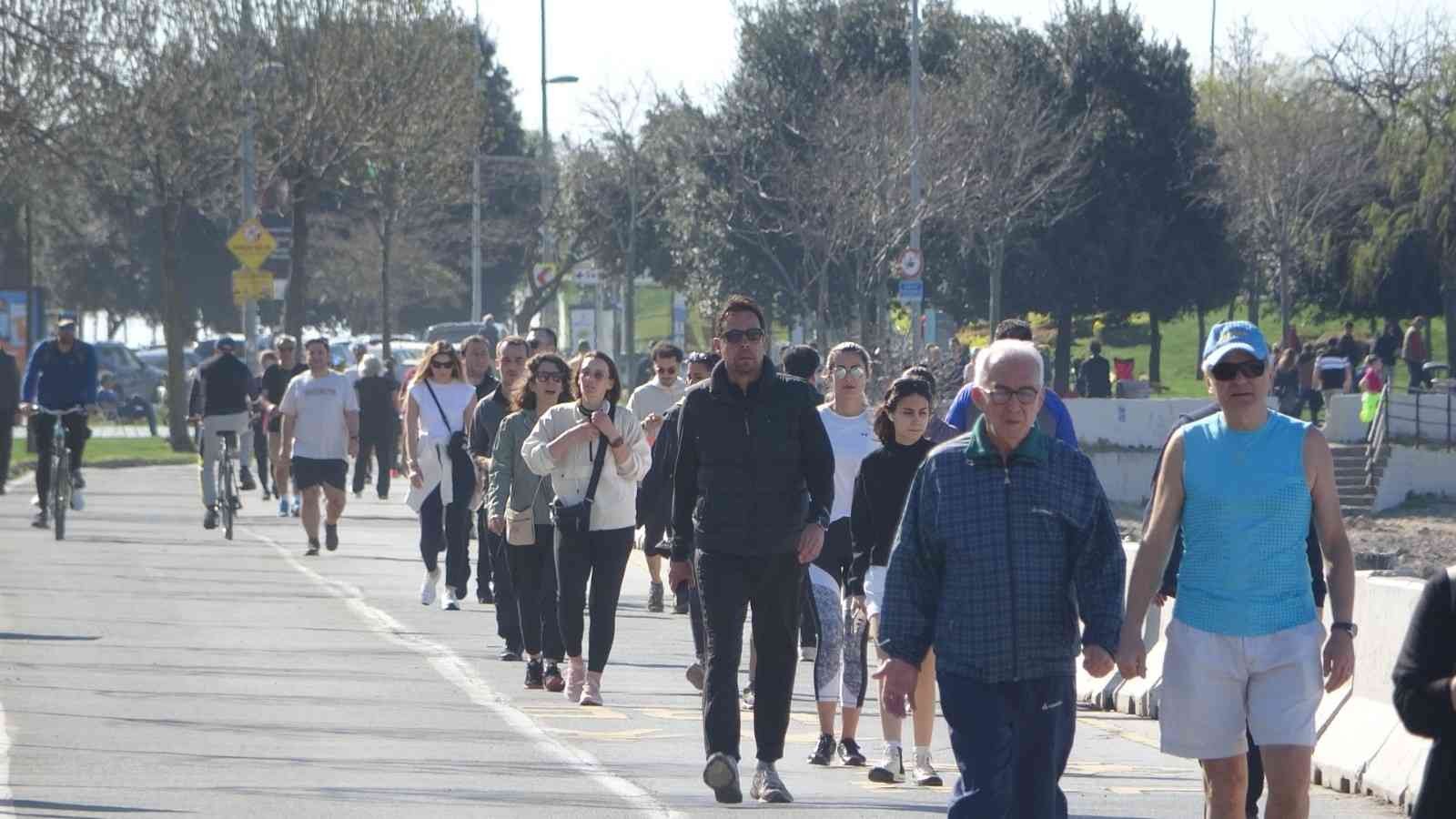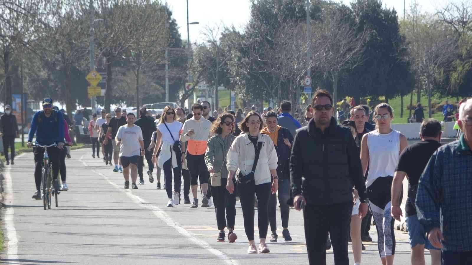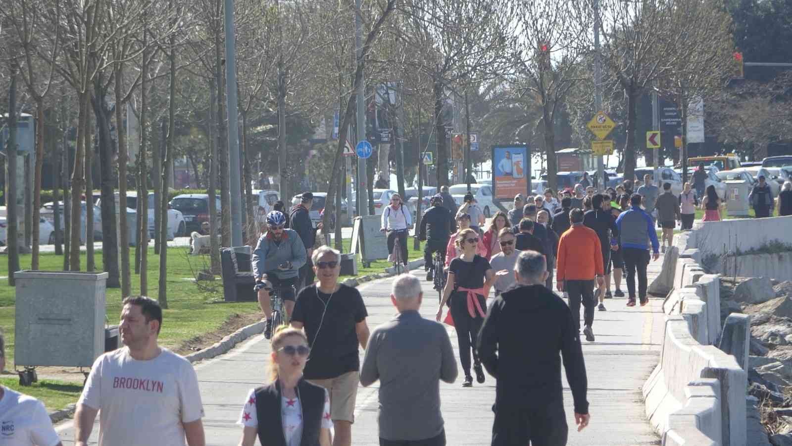 Havanın güzel olmasıyla sahile yürüyüşe çıkan vatandaşlardan İpek Gündoğan, “Pandemide eve kapanmıştık. Ondan sonra havalar güzelleşince artık kimse evde duramıyor.