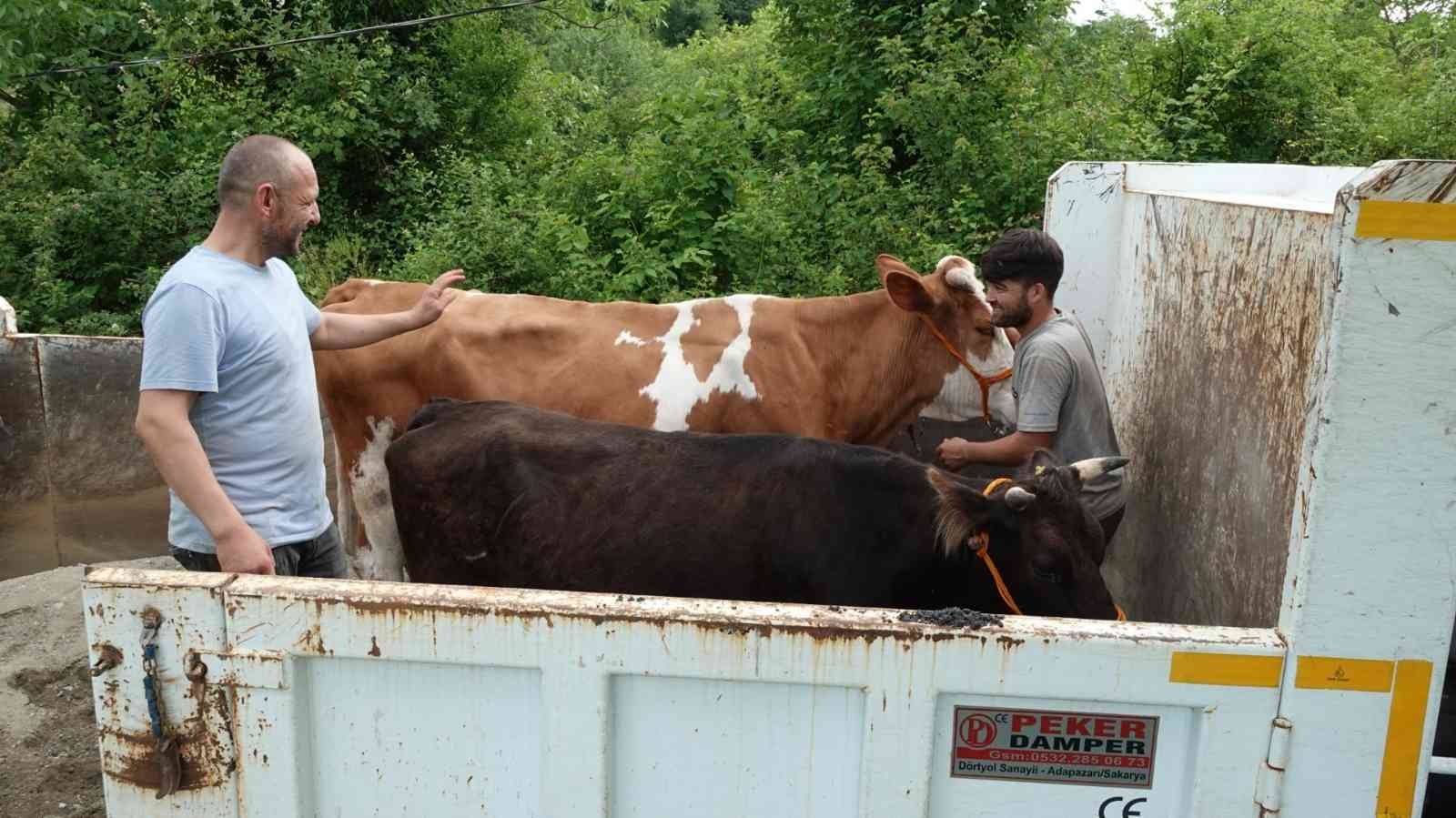 Kazım Şen’e Gölcük Belediye Başkanı Ali Yıldırım Sezer de nakliye desteği verdi. Kazım Şen, hediye ettiği 2 büyükbaş hayvanı Gölcük Belediyesi ekiplerine teslim etti. Belediyeye ait kamyona yüklenen hayvanlar, tüm birikimini kaybeden Rahim Turunç’a teslim edilmek üzere yola çıktı.