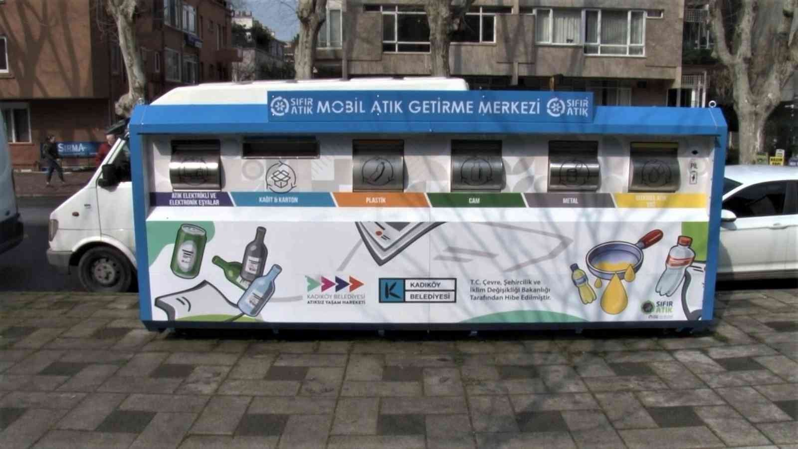 Kadıköy’de geri dönüşüm çalışmaları kapsamında yer alan 299 adet geri kazanılabilir atık kumbarası, 387 adet cam atık kumbarası, 36 adet bitkisel yağ toplama noktası ve 182 atık pil kumbarasının yanı sıra 21 mahallede toplamda 23 noktaya Mobil Atık Getirme Merkezleri kuruldu. Kadıköy Belediyesi tarafından gerçekleştirilen çalışma kapsamında, ev ve iş yerlerinde ortaya çıkan ve haftalık toplama sistemine ulaşamayan geri kazanılabilir atıkların toplanması sağlanacak. Mobil Atık Getirme Merkezleri ile birlikte kağıt, karton, plastik, cam, metal ve bitkisel yağ atıkları tek bir noktada buluştu.