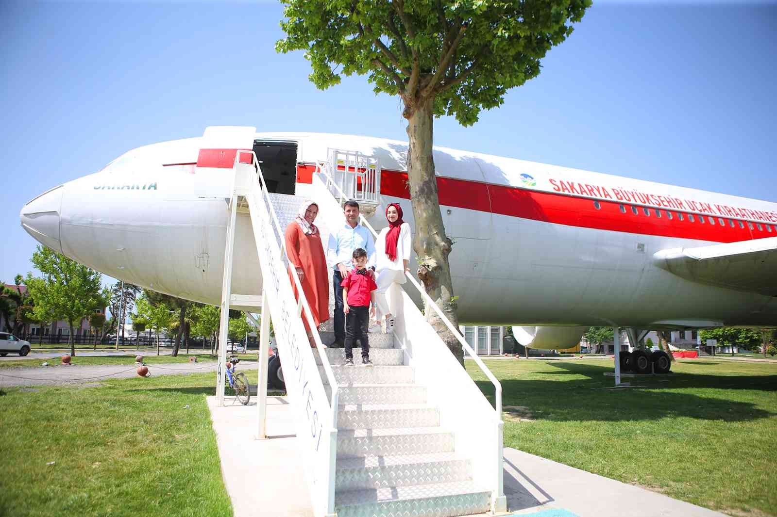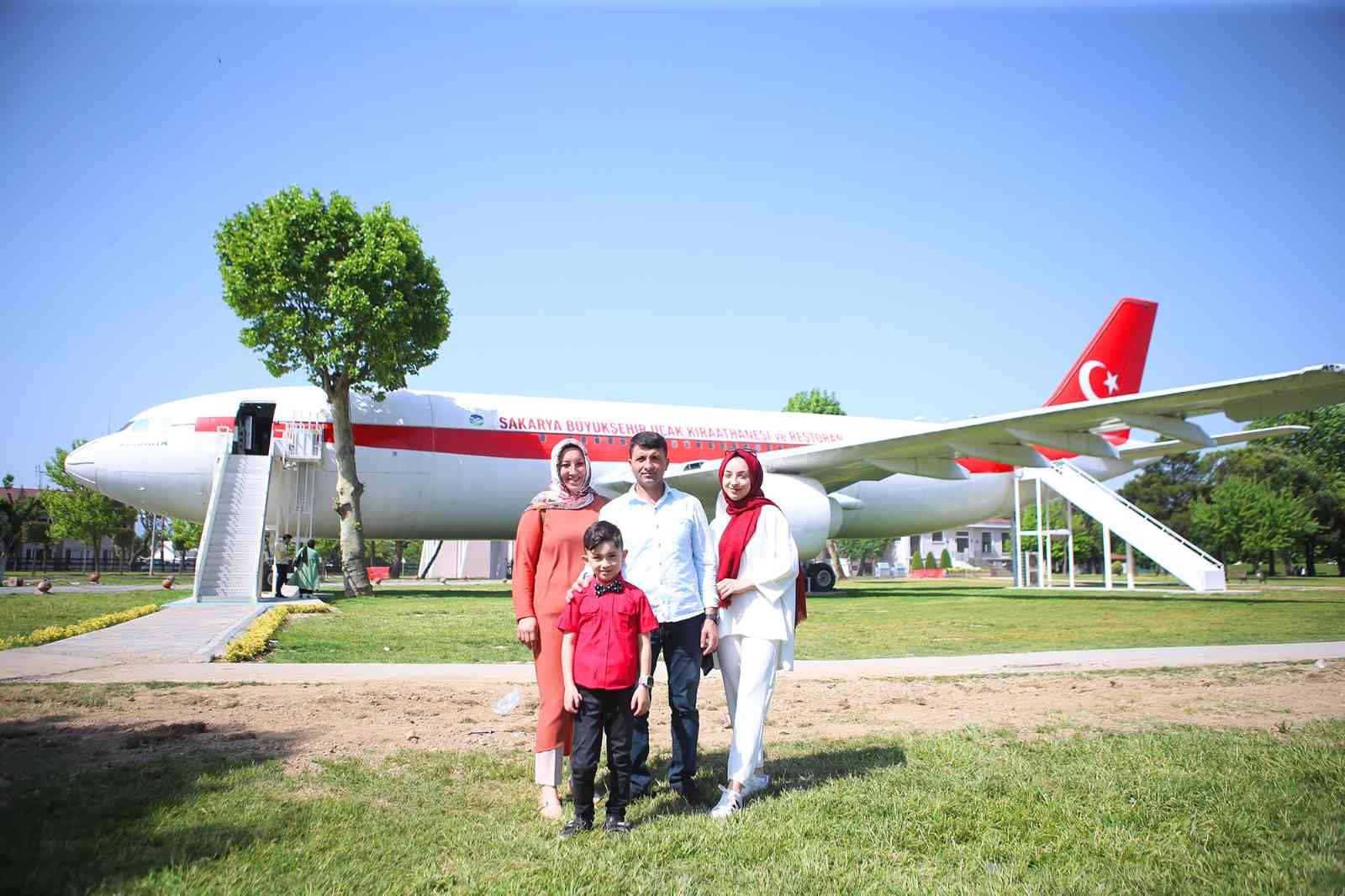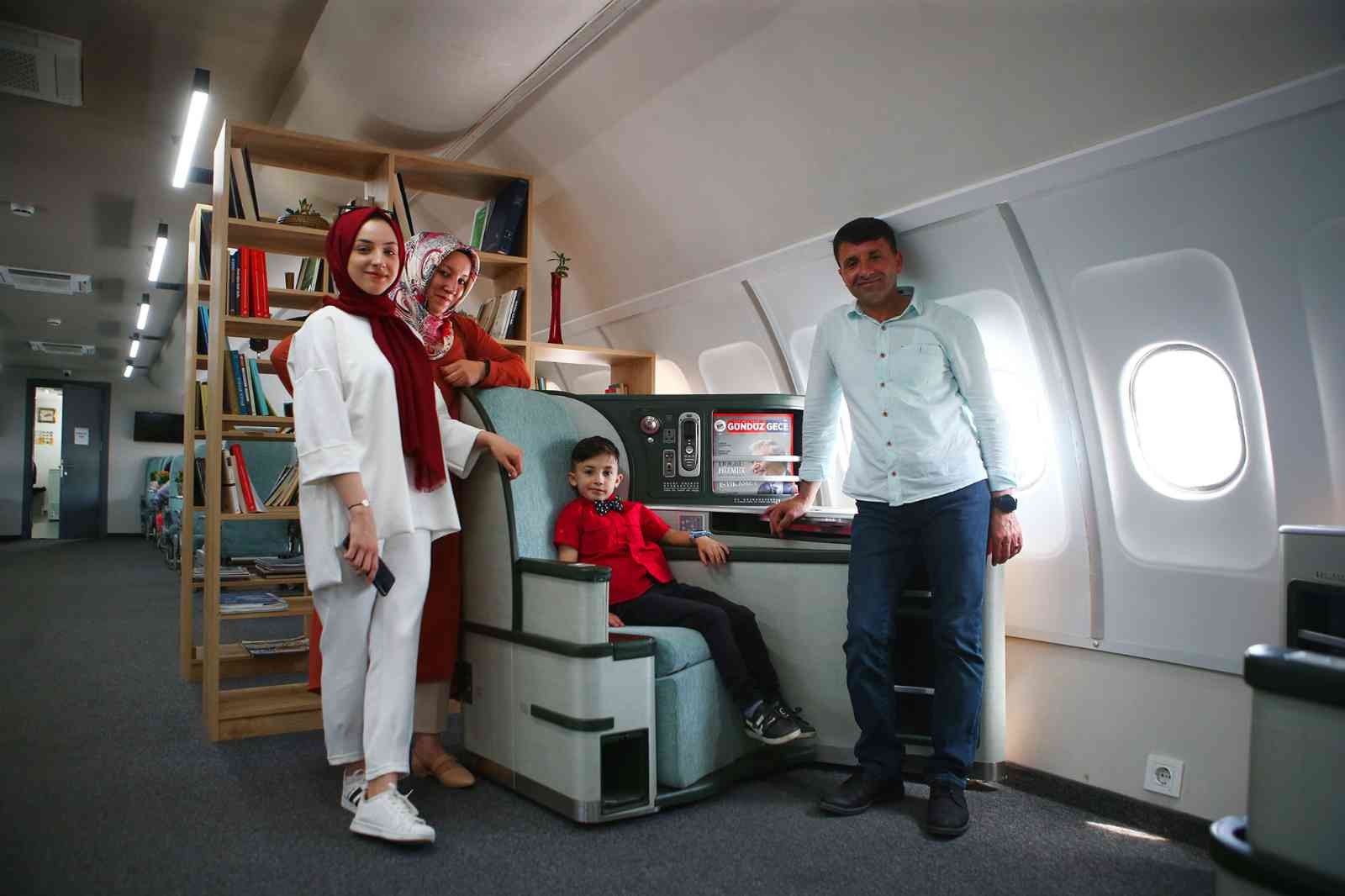 İstediği izni alamayan küçük çocuğun ailesi, yaptığı araştırmada Sakarya’ya bir uçak kıraathane yapıldığını öğrenince ilk fırsatta buraya geldi. Annesi Zennur, babası Metin ve ablası Zeynep Hıdır ile birlikte hayatında ilk kez burada uçağa binen engelli çocuk, büyük bir mutluluk yaşadı.