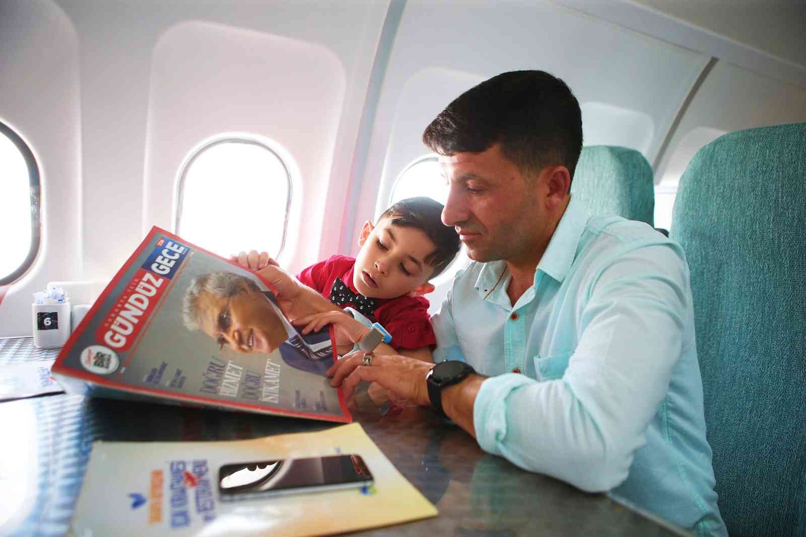 Mutluluğu adeta gözlerinden okunan 6 yaşındaki Ömer’de, “Daha önce uçağa hiç binmemiştim şimdi ise bu deneyimi yaşadım.