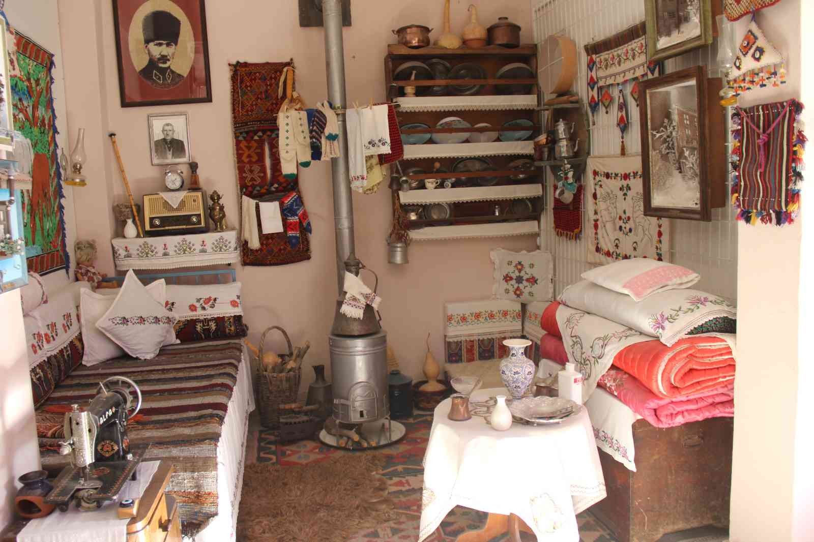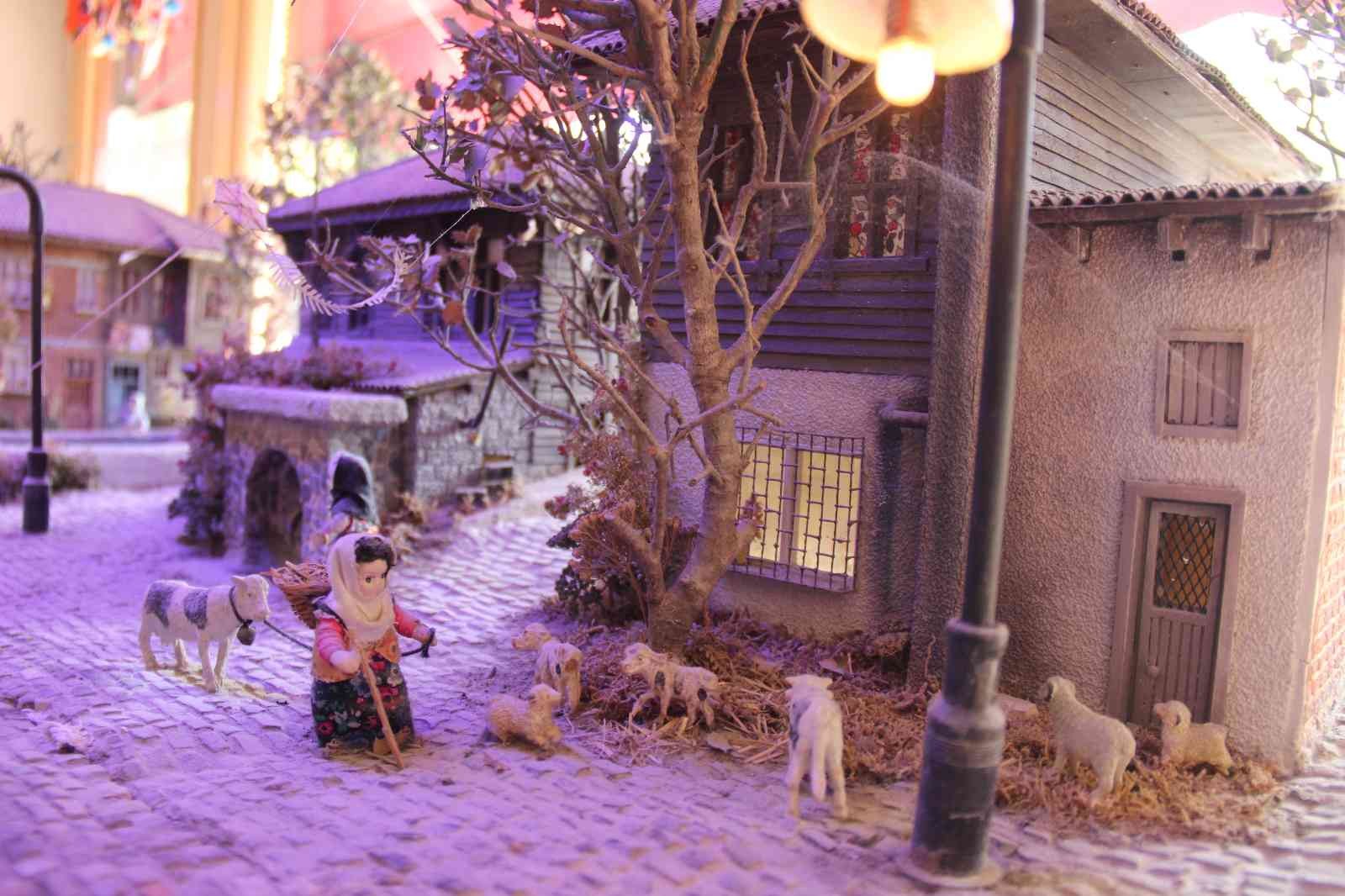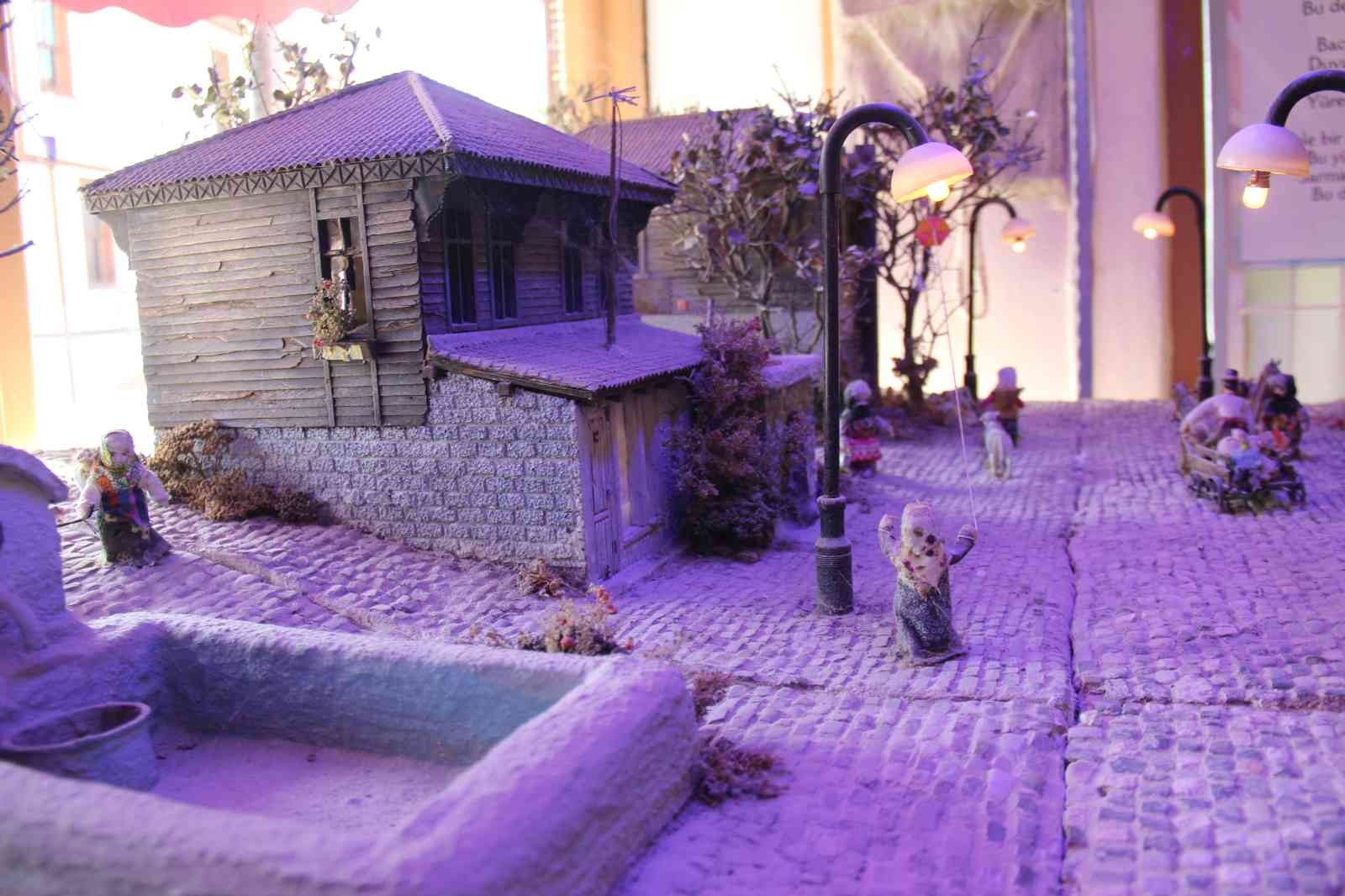 Çalışmalarına atölyesinde devam ettiğini kaydeden Mehmet Erol Buga, “Doğadaki atıklarla eski Türk evlerini yapmaya çalışıyorum.