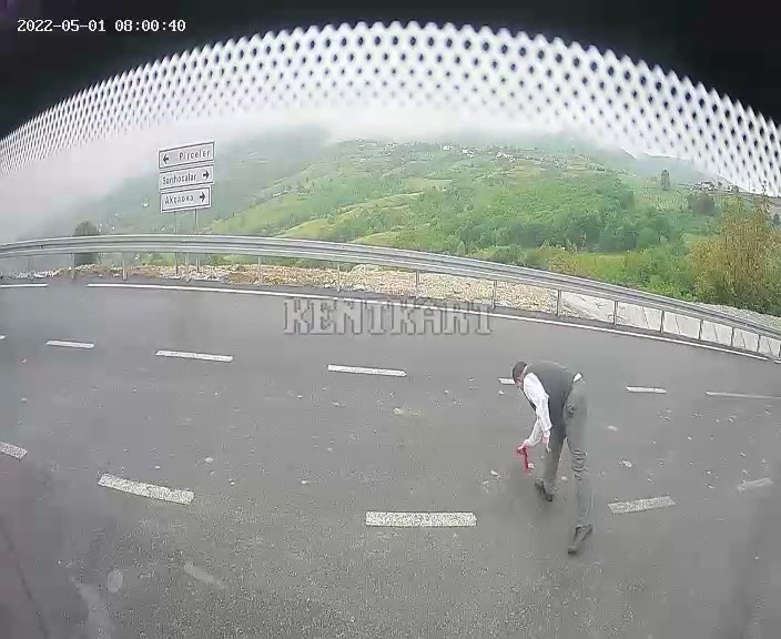 O anları anlatan sürücü İbrahim Aslan, “Kavşaktan dönerken yerde kırmızı bir şey olduğunu hissettim. Onun Türk bayrağı olabileceğini düşündüm.