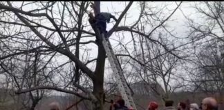 Budadığı ağaçta fenalaşarak mahsur kaldı, yardımına itfaiye koştu